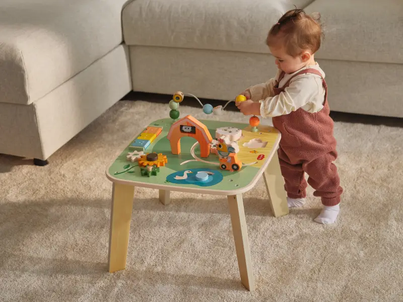Stolík pomáha rozvíjať jemnú motoriku, jednotlivé zmysly, emočnú inteligenciu aj kreativitu dieťaťa.
