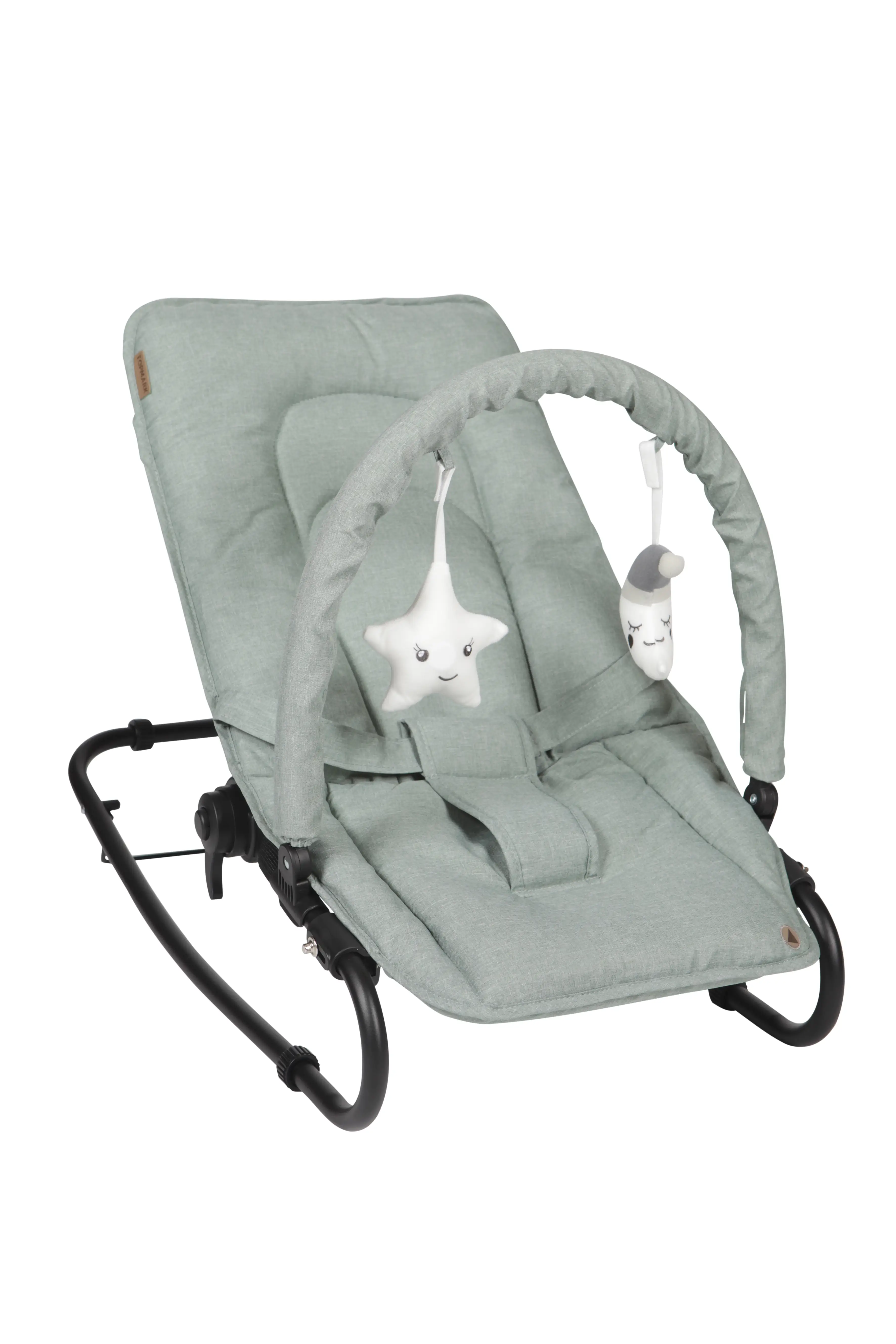 Kresielko TOBY je vybavené oblúkom so závesnými hračkami.