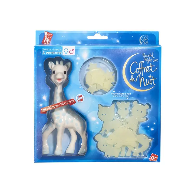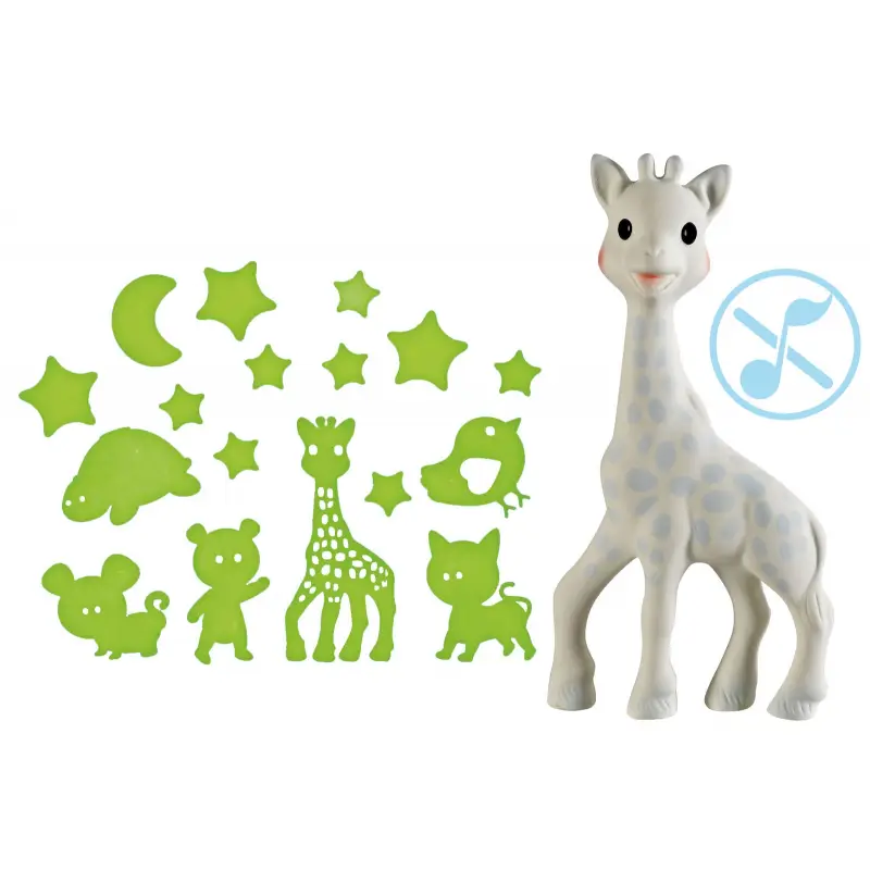 Hračka žirafa Sophie v v tejto sade neobsahuje pískatko a i napriek tomu je kombináciou zábavy a praktickosti - a predovšetkým nezobudí ani dieťa ani spiacich rodičov uprostred noci.