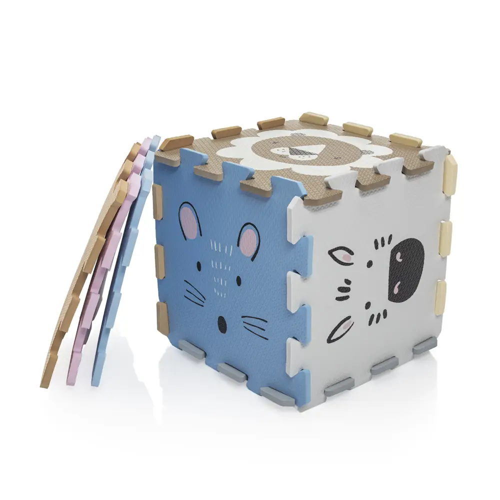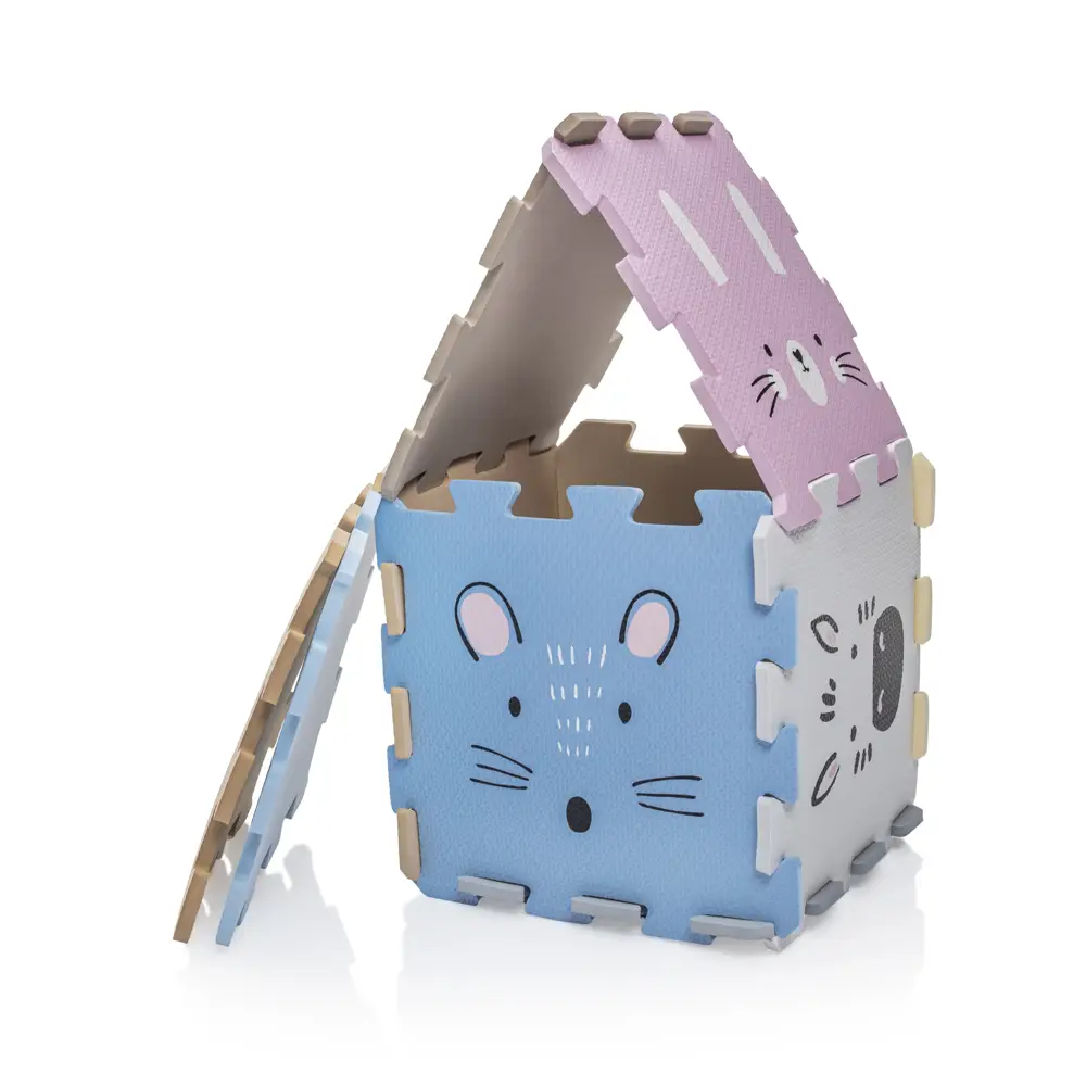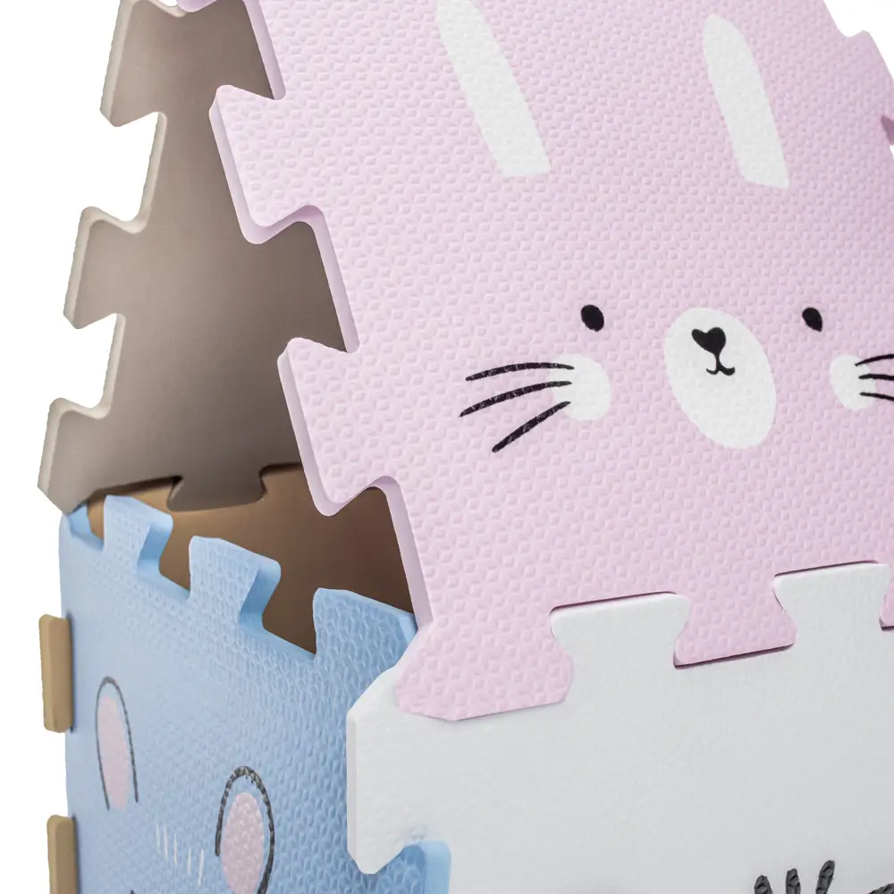Penové puzzle je vyrobené z kvalitnej EVA peny. Slúži nielen ako podložka, ktorá zabezpečí pohodlie vďaka izolácii od chladu, ale aj ako praktická pomôcka pre prvé mesiace bábätka, keď poskytuje mäkkú oporu pri pásení koníčka alebo pri prvom lození.