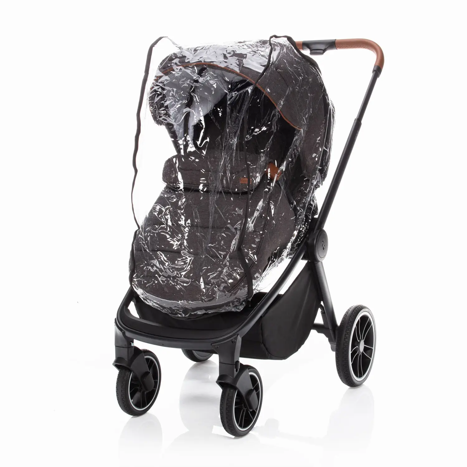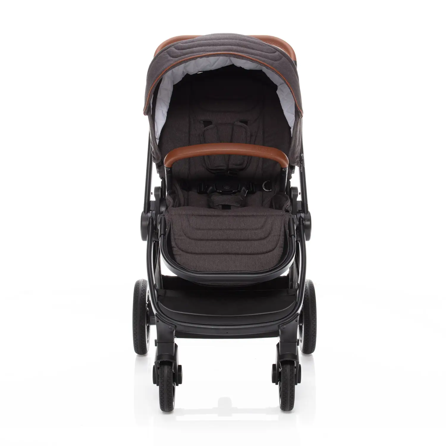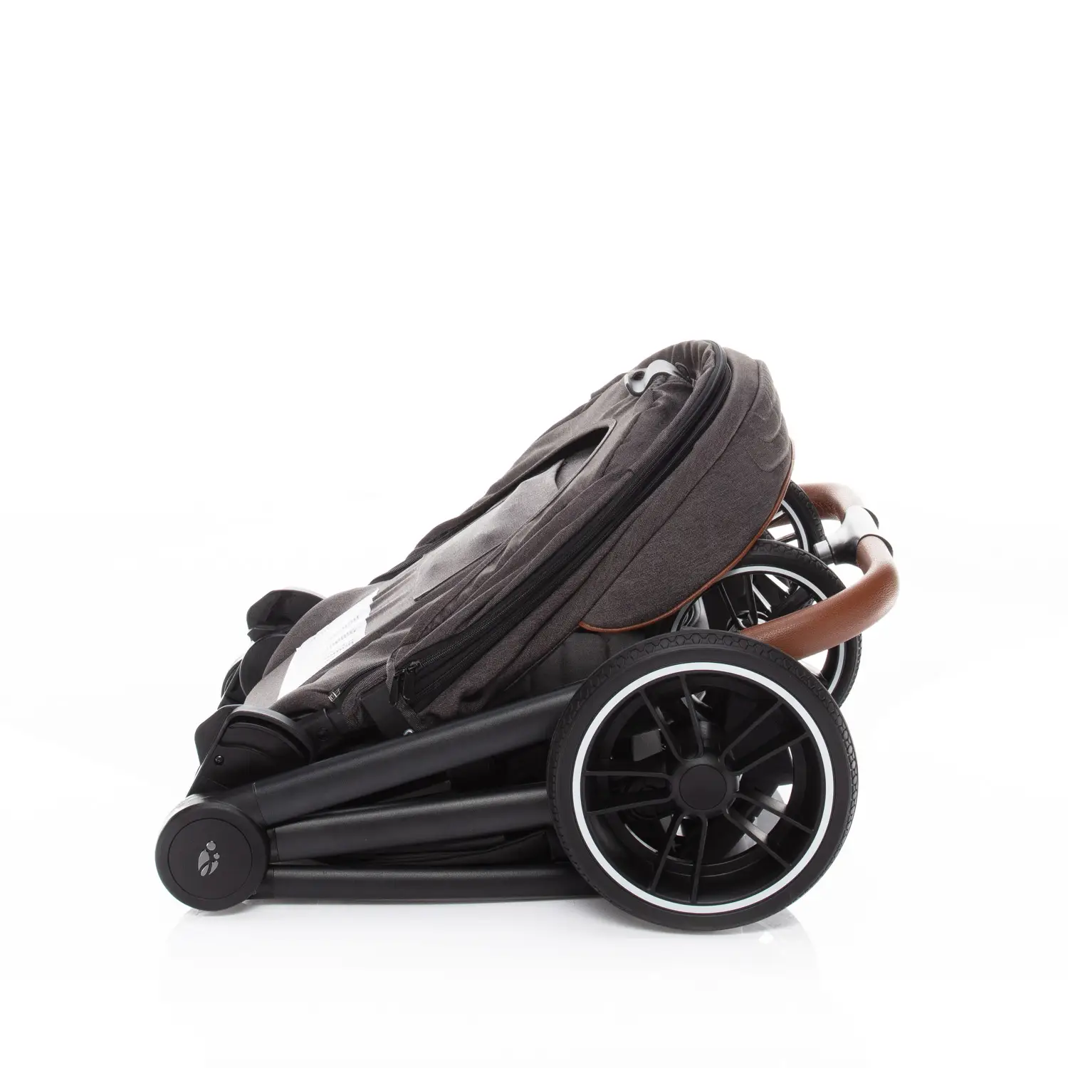 Ak ste vyššieho vzrastu, u kočíku iste oceníte výškovo nastaviteľnú rukoväť, ktorá je, rovnako ako hrazda, vyrobená z eko-kože. Čo tiež podčiarkuje moderný dizajn kočíka. Pre ľahšiu manipuláciu môžete hrazdu šikovne odopnúť a odkloniť na stranu. Tým si uľahčíte vkladanie dieťaťa do kočíka, kde ho bezpečne pripútate 5bodovým bezpečnosťným pásom. Pre zaistenie kočíka samozrejme nechýba ani centrálna brzda.
