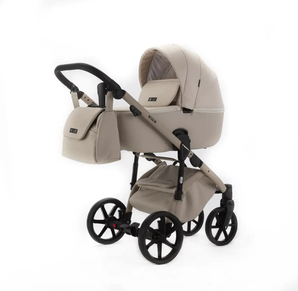 Kombinovaný kočík Adamex Nola v kolekcii Natura je cenovo dostupný model kočíka, ktorý budete zbožňovať. Kolekcia sa vyznačuje dokonale zladenými farebnými kombináciami látky, eko-kože, doplnkov a rámu kočíka