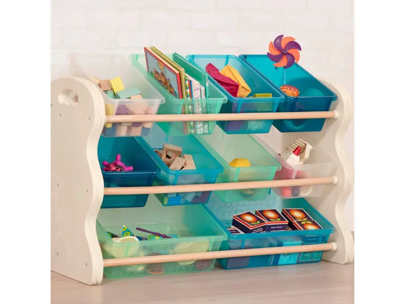 Štýlový organizér na desať plastových boxov zjednoduší a spríjemní vašim deťom každodenné upratovanie hračiek, výtvarných potrieb a podobne. Boxy zo stojana ľahko vyberiete, takže pre hranie aj upratovanie si ich vždy môžete odniesť, kam potrebujete. Dve veľkosti boxov umožňujú prehľadné ukladanie drobnejších i väčších predmetov. Otvory na bočných stenách organizéra uľahčujú jeho uchopenie a jednoduché premiestnenie.