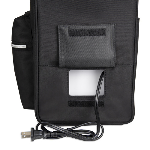 Bezpečné upevnenie: Velcro pásik pevne drží prístroj na mieste, aby sa počas prepravy nepohol.