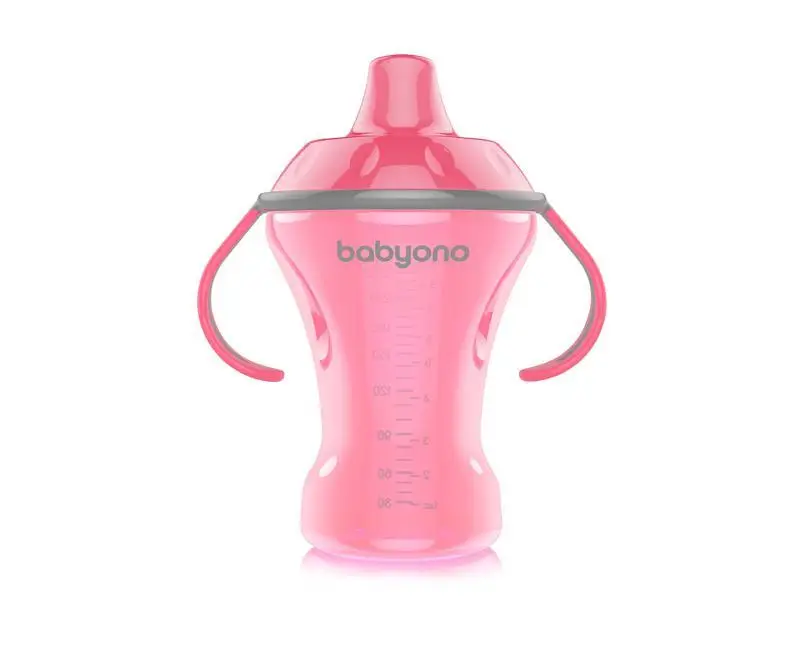 BABYONO Hrnček netečúci s tvrdým náustkom Natural Nursing 260 ml ružová