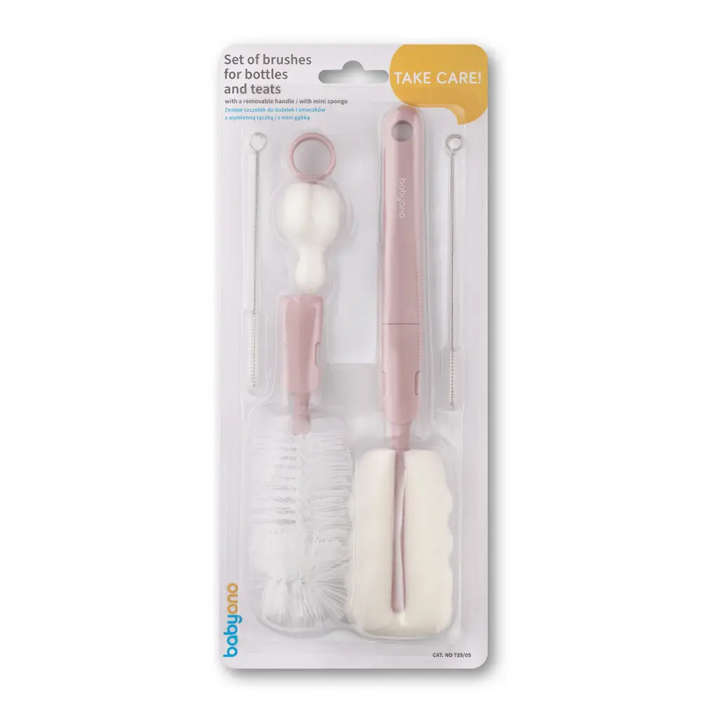 Produkt BABYONO Kefky na dojčenské fľaše a cumlíky s odnímateľnou rukoväťou Pink