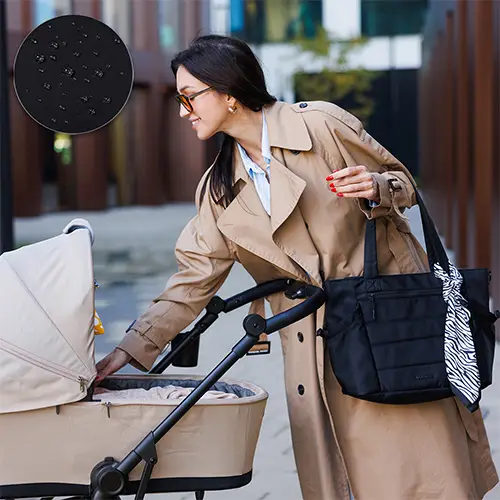 - VODEODOLNÝ MATERIÁL: Idete na prechádzku za každého počasia? Naša taška pre matku a dieťa, vyrobená z nepremokavého materiálu, bude perfektnou voľbou - neodolá dažďu ani snehu. Ľahko sa čistí a rýchlo schne.