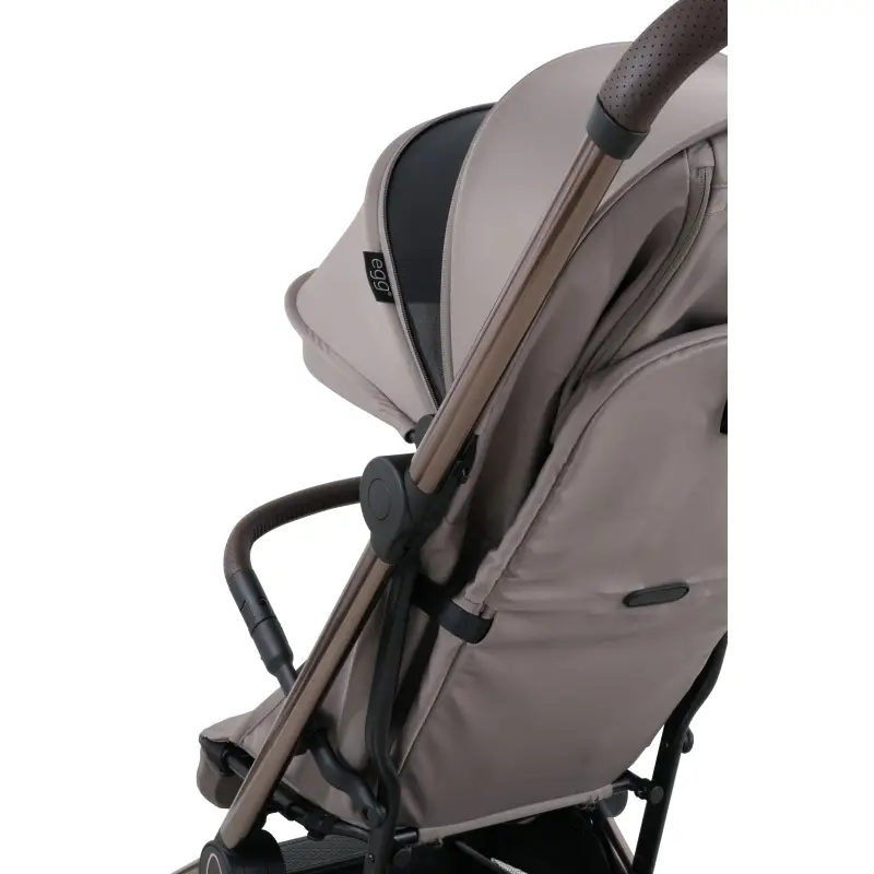 Typické prvky egg® nájdete na každom detaile – od elegantných kriviek a dezénu kolies až po ručne šitú koženkovú rukoväť (s výškou 105 cm) a odnímateľné madlo pred dieťaťom. Každý detail bol starostlivo premyslený pre potreby moderných rodičov, ktorí ocenia spojenie designu a funkčnosti.