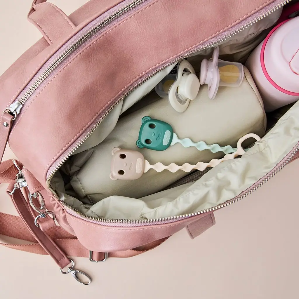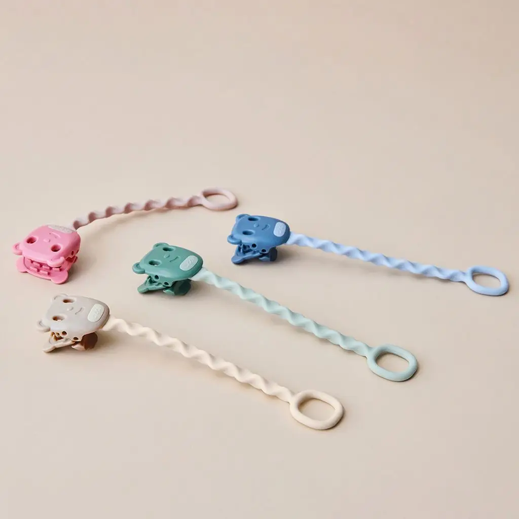 Klip má rozkošný dizajn medvedíka a vďaka jednoduchému mechanizmu ho možno odopnúť aj pripnúť jednou rukou. Patentovaný 3D pásik je dostatočne flexibilný a ohýba sa do všetkých smerov. Silikónový pásik obsahuje antimikrobiálnu prísadu na báze striebra, ktorá eliminuje až 99,9 % baktérií.