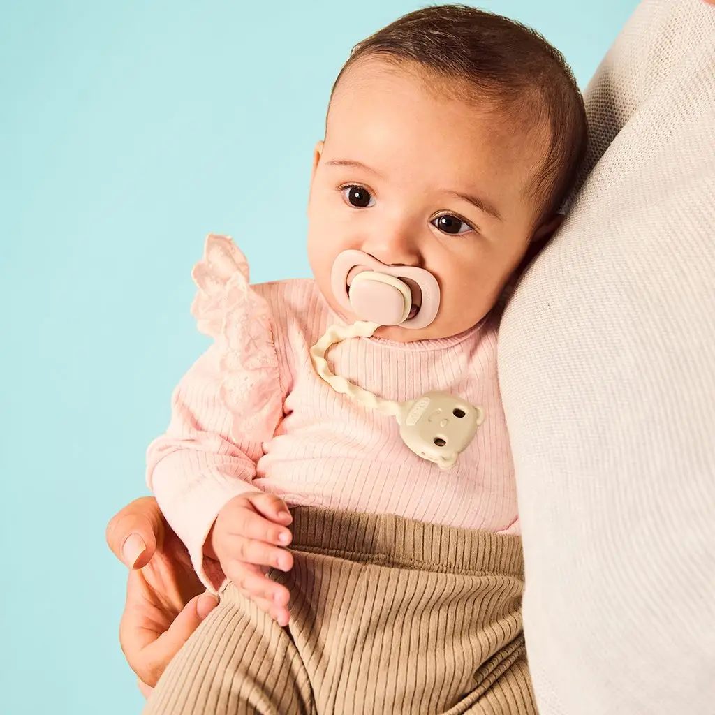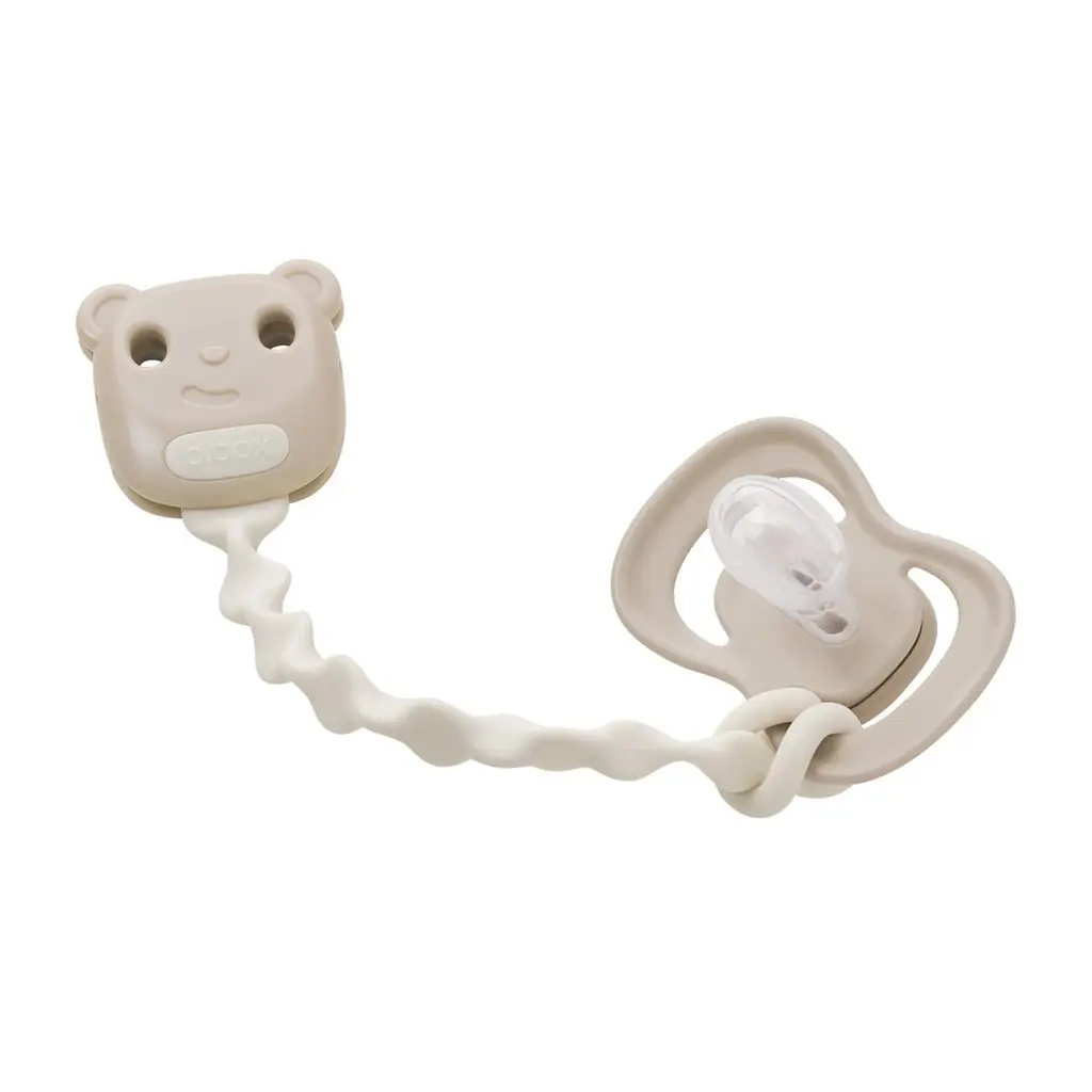 Klip má rozkošný dizajn medvedíka a vďaka jednoduchému mechanizmu ho možno odopnúť aj pripnúť jednou rukou. Patentovaný 3D pásik je dostatočne flexibilný a ohýba sa do všetkých smerov. Silikónový pásik obsahuje antimikrobiálnu prísadu na báze striebra, ktorá eliminuje až 99,9 % baktérií.