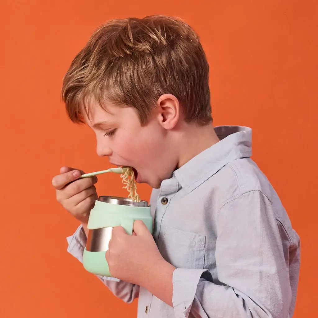 Široké hrdlo termosky umožní, aby malé ručičky dosiahli na posledné sústo na dne. Na viečku je "uško", za ktoré je možné termosku nosiť alebo zavesiť na karabínu. Okrem toho je toto "uško" skvelé aj pre slabé alebo malé ruky - vložením prstov do otvoru a pootočením je možné využiť "páku" a tak je otvorenie ľahké ako pre deti, tak aj pre starších ľudí. Uchá po stranách termosky aj kryt chrániaci dno termosky z vonku sú odnímateľné. K termoske je možné dokúpiť náhradnú vidličko-lyžičku.