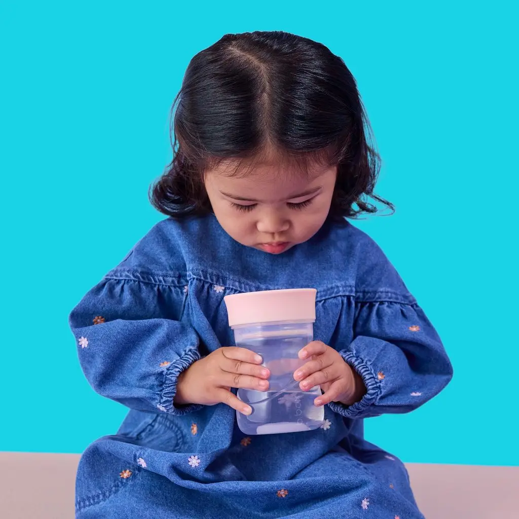 Varovné a bezpečnostné informácie: Niektoré tekutiny môžu spôsobiť zafarbenie produktu. Toto nemá vplyv na funkčnosť produktu a nie je dôvodom na reklamáciu. Nepoužívajte pre tekutiny teplejšie ako 45 ° C, perlivé nápoje, džúsy s dužinou alebo na instantné dojčenské mlieka (platí pre slamku). Nie je vhodné pre deti mladšie ako 4 mesiace. Slamka nie je určená pre deti mladšie ako 6 mesiacov. Nenechávajte dieťa slamku ani cumlík hrýzť! Časté a dlhodobé sanie tekutín môže spôsobiť vznik zubného kazu. Nenechávajte dieťa bez dozoru dospelej osoby. Nikdy nepoužívajte cumlík alebo slamku ako cumlík. Nenechajte dieťa pri používaní s produktom behať alebo sa inak pohybovať. Pred každým použitím skontrolujte, či sú všetky časti produktu v poriadku a pri známkach opotrebovania zlikvidujte. Obaly a nepoužívané časti uchovávajte mimo dosahu detí. Nenechávajte na priamom slnku alebo pri zdroji tepla. Nepatrí do mrazničky ani mikrovlnnej rúry, okrem samotnej základne, ktorá sa dá používať v mikrovlnnej rúre.