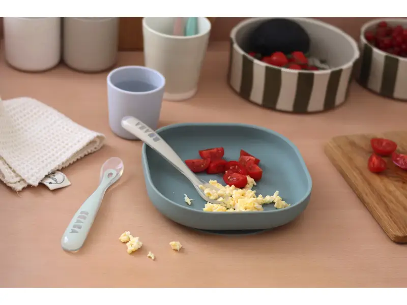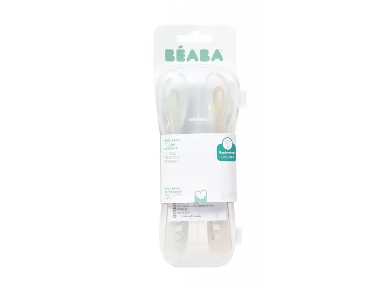 Silikónové lyžičky Beaba pre najmenších sú šetrné k citlivým detským ďasnám a navrhnuté pre hladký prechod z cumlíka na lyžičku. Dlhá rukoväť uľahčuje rodičovi naberanie z misky aj pohára bez zašpinenia rúk. Praktické puzdro umožňuje hygienické prenášanie lyžičiek napr. v prebaľovacej taške.