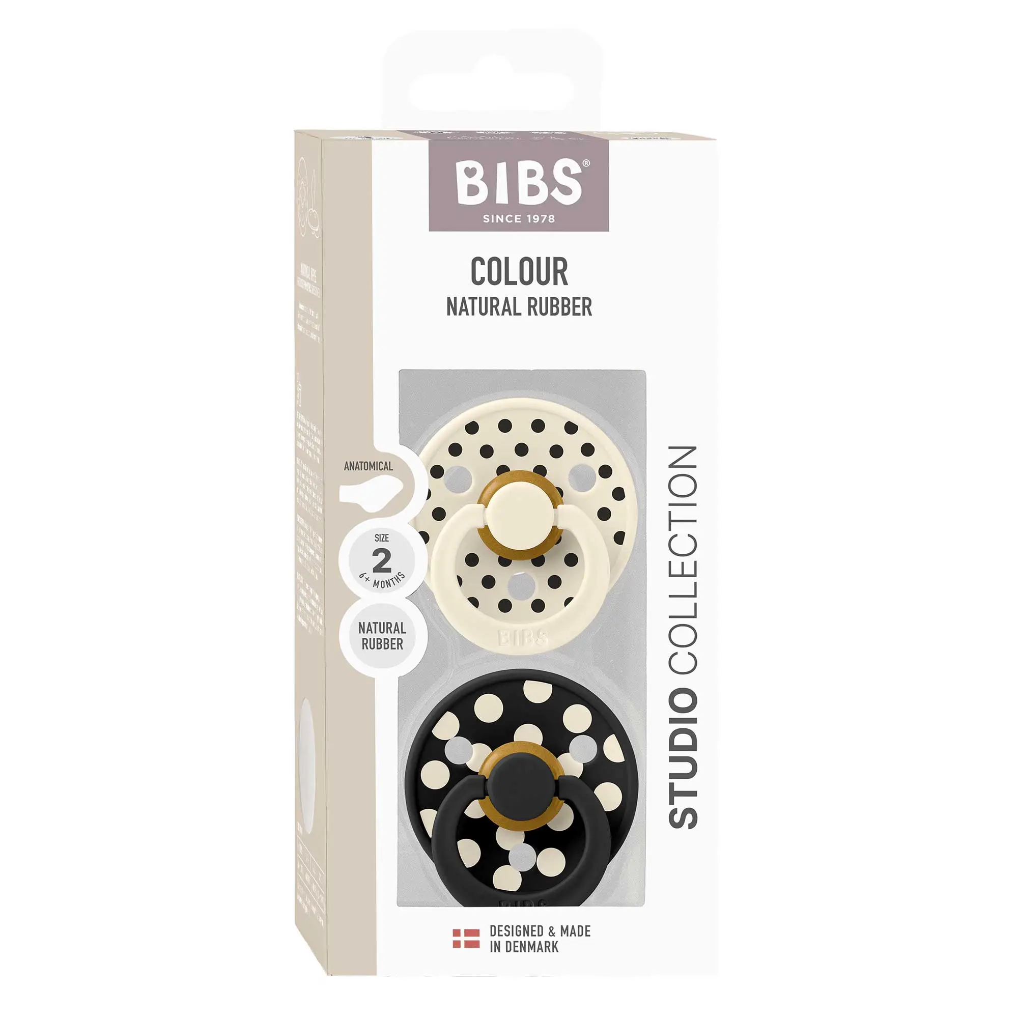BIBS STUDIO Colour Polka anatomické cumlíky z prírodného kaučuku 2ks - veľkosť 2 ivory-black