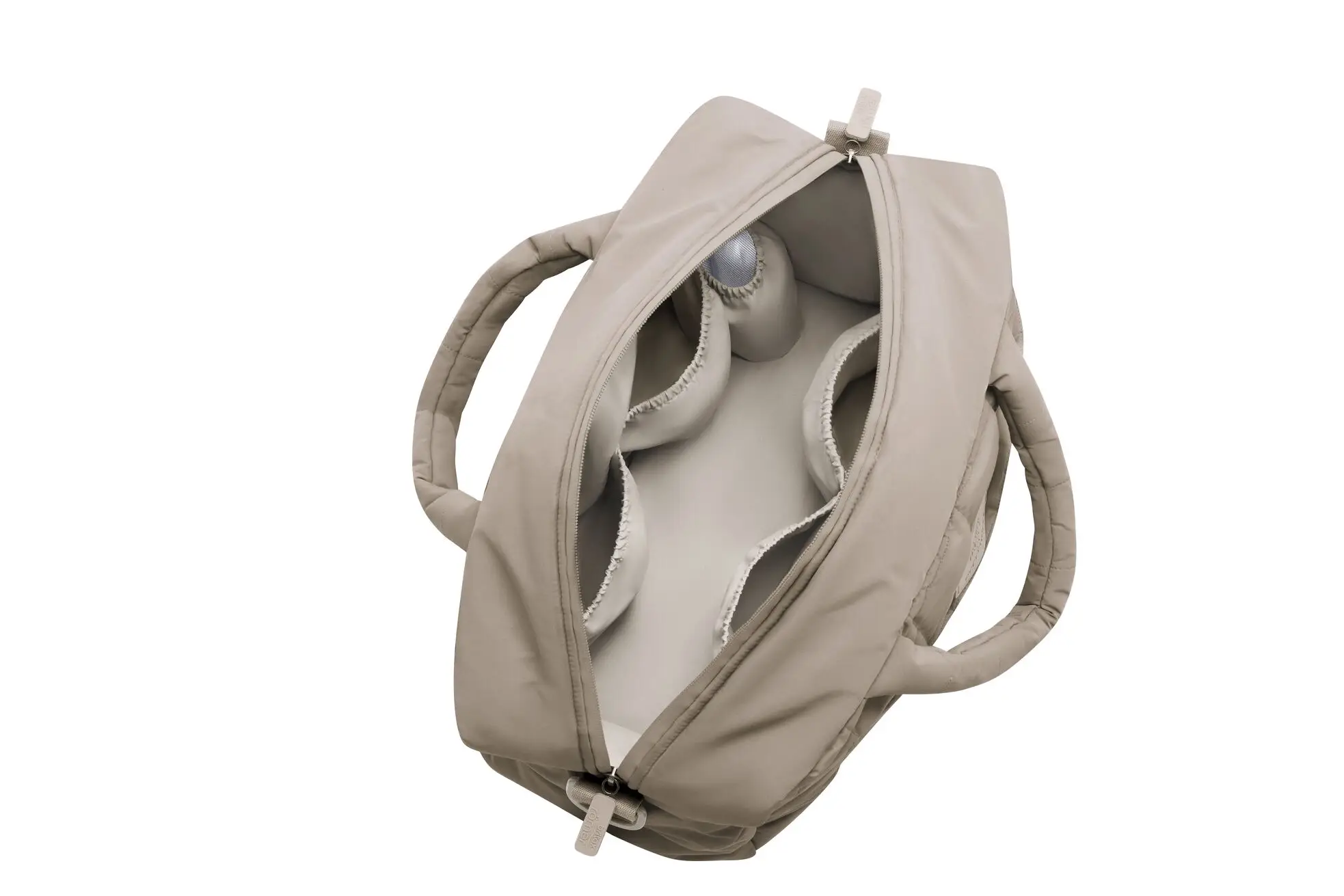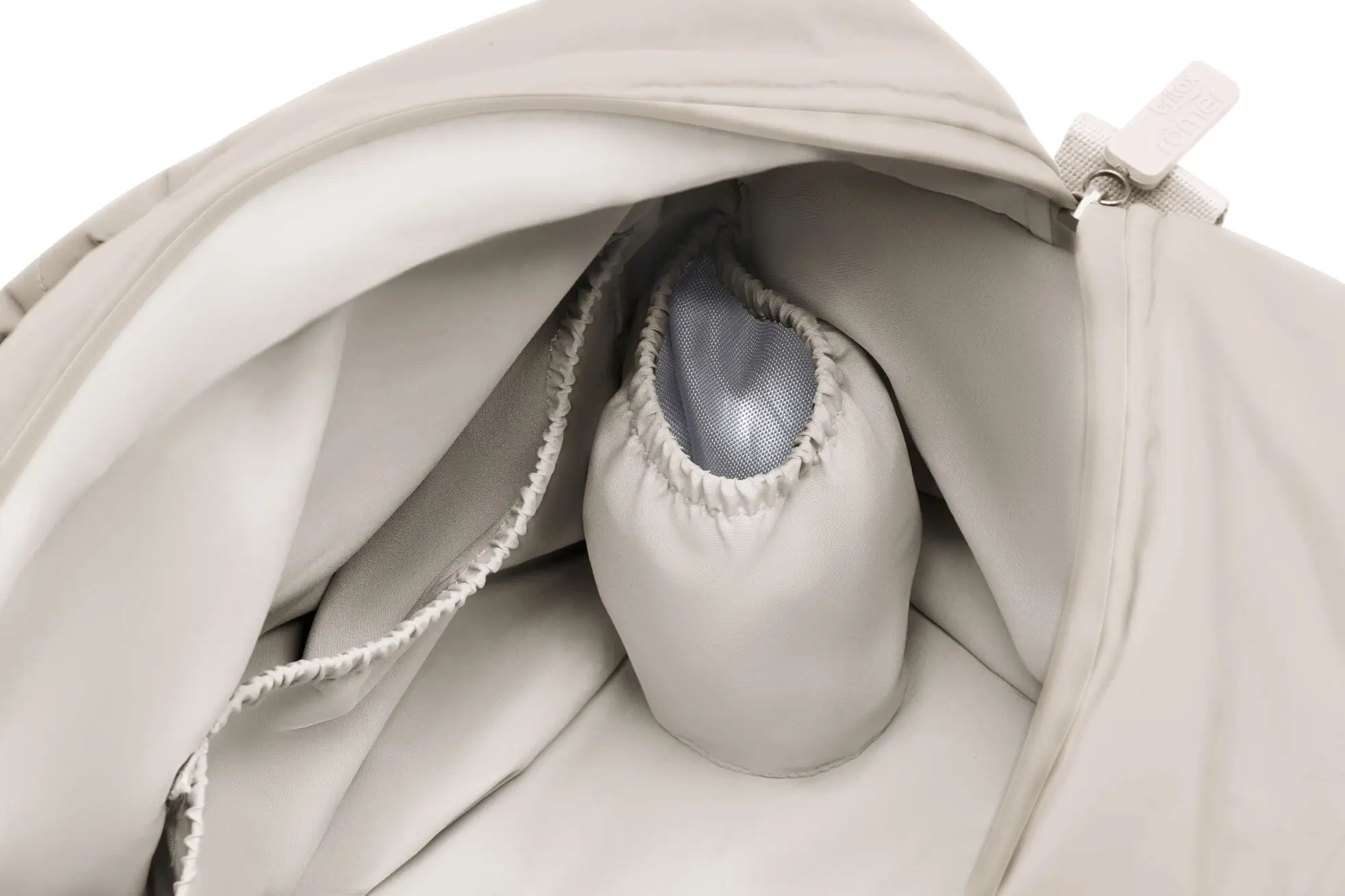 Vyrobená z 48 recyklovaných PET fliaš, taška aj podložka sú šetrné k prírode. Materiál je mäkký, odolný, nepremokavý a navrhnutý tak, aby vydržal celé detstvo vášho dieťaťa.