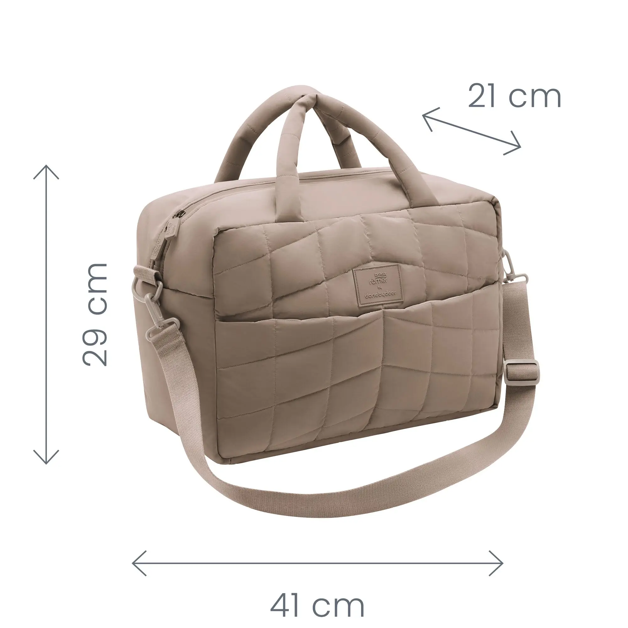 Súčasťou tašky je aj praktická prebaľovacia podložka. Tašku môžete jednoducho pripnúť na kočík alebo nosiť cez rameno – ideálne na prechádzky, výlety aj spoločné aktivity.