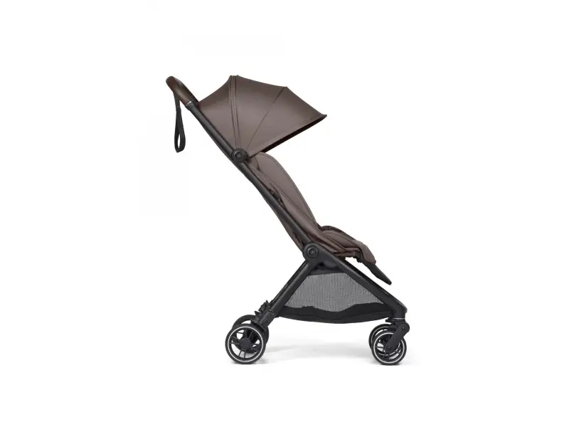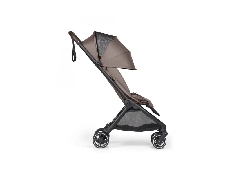 Kočík ľahko zložíte jednou rukou, po zložení sám stojí, takže sa s ním lepšie manipuluje na letisku, vo vlaku aj v reštaurácii. Pre ľahké prenášanie je súčasťou kočíka ramenný popruh a cestovná taška.