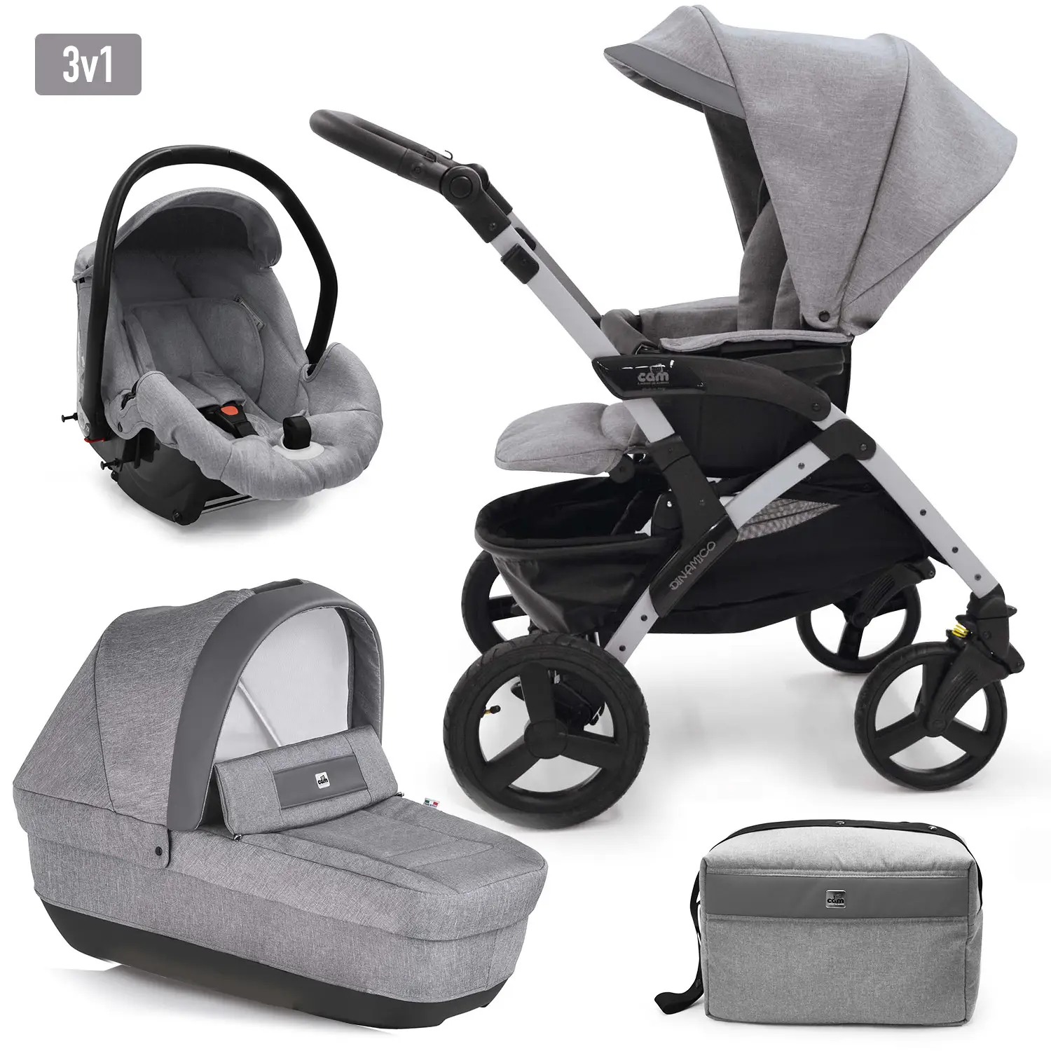 Trojkombinácia kočíka Dinamico Smart od talianskej značky CAM je ako stvorená pre vaše malé veličenstvo. Nielen moderný dizajn farebného setu s podvozkom, ale aj množstvo vychytaných funkcií – to všetko dieťatku zaistí priamo kráľovské pohodlie.