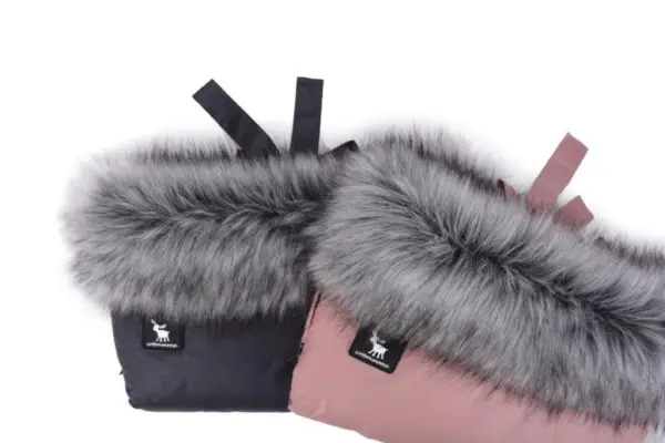 Teplý a univerzálny rukávnik vhodný pre ženy a mužov, chrániaci pred chladom, snehom, dažďom a vetrom, inštalovaný na kočíku so zipsami a stuhami všitými do rukávnika.