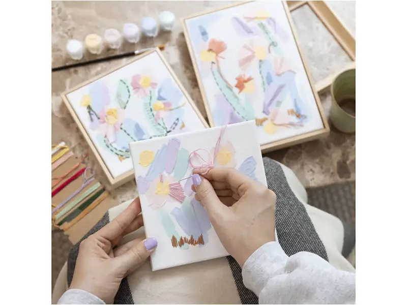 Kreatívna sada pre dospelých, ktorá spája maľbu a výšivku do jedného umeleckého zážitku. Ideálne pre tých, ktorí chcú experimentovať, relaxovať a objaviť nový spôsob, ako prepojiť farby, textúry a nite v originálnych obrazoch.