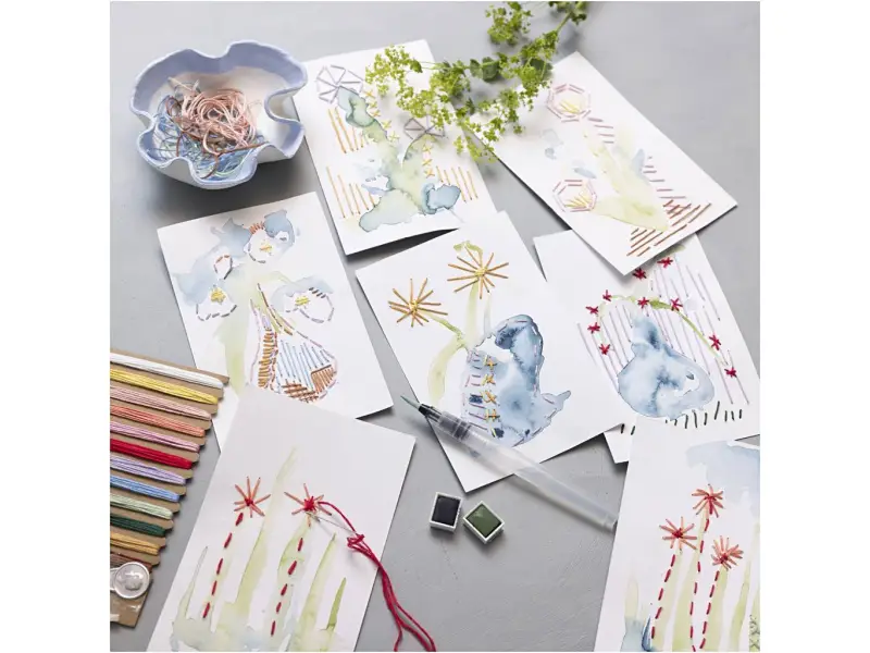 Kreatívna sada pre dospelých, ktorá kombinuje akvarel a výšivku v jednom originálnom projekte. Ponúka možnosť vytvoriť šesť jedinečných obrázkov, ktoré sa skvele hodia ako osobné priania, darčeky alebo dekorácie na stenu.