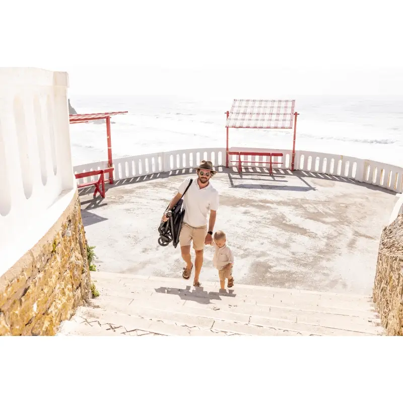 Rozťahovateľná strieška poskytuje ochranu pred slnkom UPF 50+ a obsahuje vetrací panel. Praktické zadné úložné vrecko a veľký košík s kapacitou 3 kg ponúkajú dostatok priestoru na všetko potrebné na cestách.