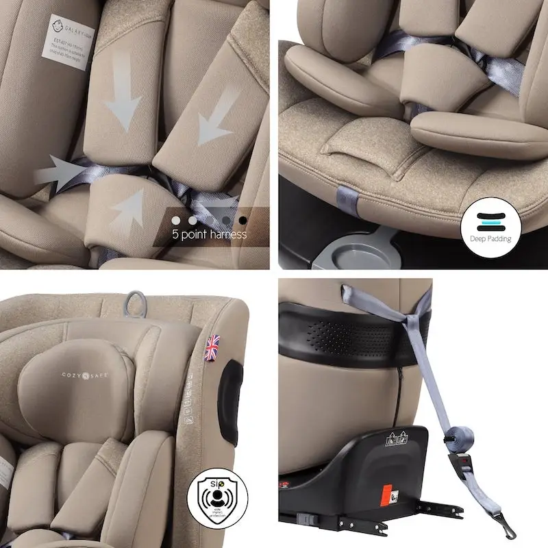 Autosedačka Cozy N Safe Galaxy i-Size 360 kombinuje bezpečnosť, pohodlie a všestrannosť, vďaka čomu sa stane ideálnou voľbou pre vaše dieťa od narodenia až do cca 12 rokov (40 – 1150 cm).