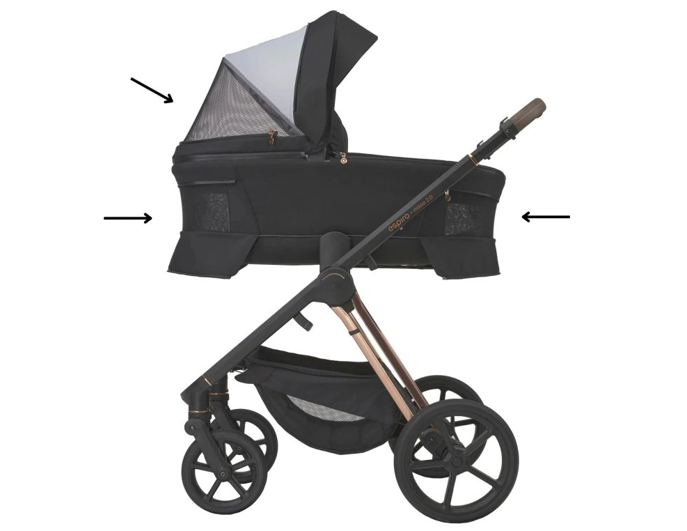 Pohodlná hluboká korba poskytuje ideální podmínky pro novorozence i mladší kojence. Je vybavena dodatečným stabilizátorem vibrací, díky kterému dítě vnímá otřesy při jízdě po nerovném povrchu, chodnících či parkových cestách jen minimálně. Korba kočárku Espiro Miloo 2.0 je navíc vybavena čtyřnásobným ventilačním systémem, který zajišťuje lepší přístup čerstvého vzduchu a přispívá k maximálnímu komfortu a pohodlí dítěte.