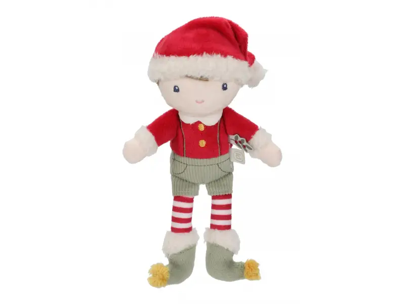Půvabná dárková sada Little Dutch obsahuje speciální vánoční knížku s kouzelnými zimními ilustracemi a měkkou plyšovou panenku v podobě panáčka Jima ve vánočním oblečení.
