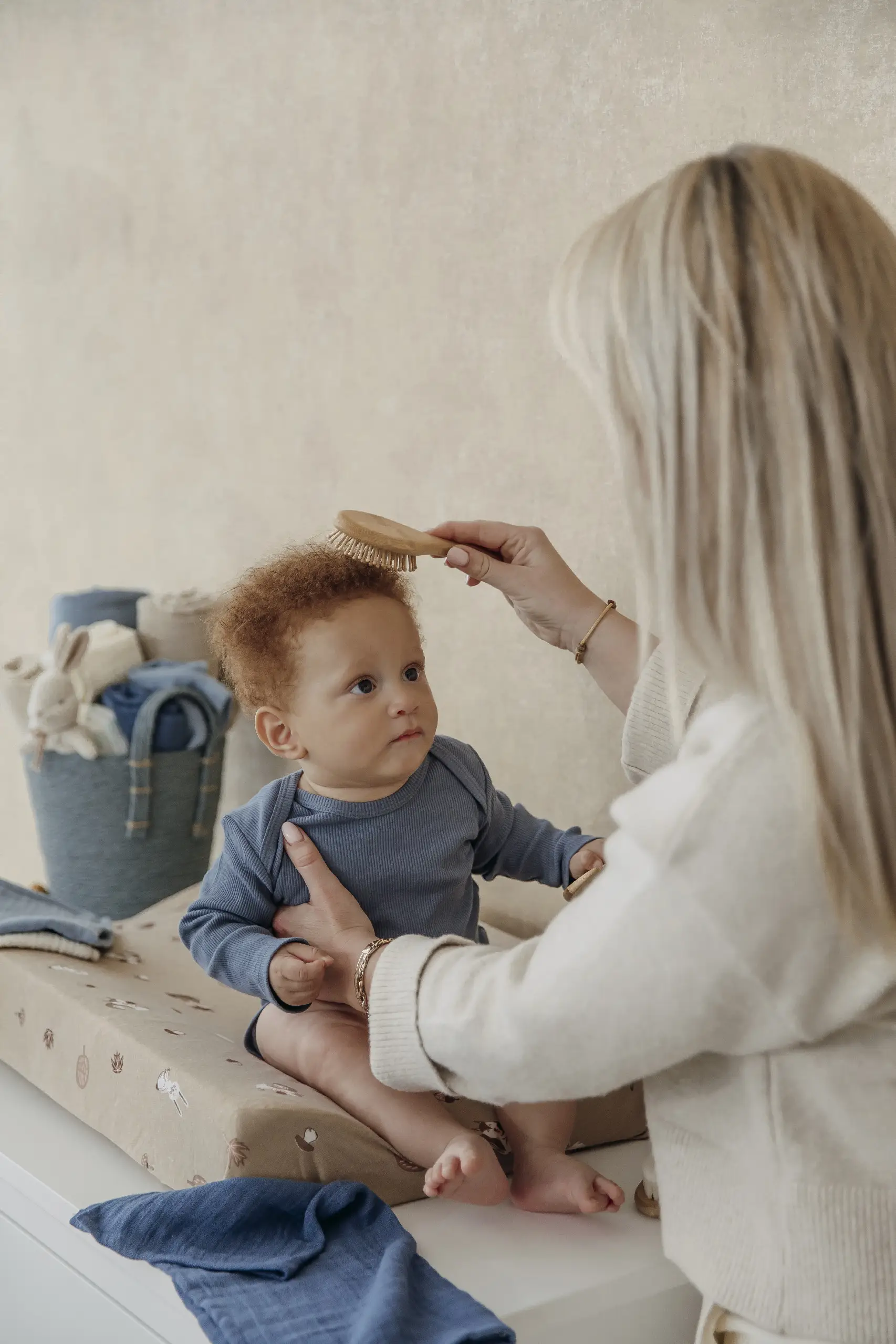Meyco Baby 3-dílná sada pro péči o vlasy. Česání se stane uklidňující chvilkou pro vás i vaše děti. Hřebeny jsou speciálně navrženy pro jemné dětské vlasy a citlivou pokožku hlavy. Kartáč z kozí srsti je mimořádně měkký a ideální pro každodenní použití, zatímco bambusový kartáč vlasy jemně rozčesává.