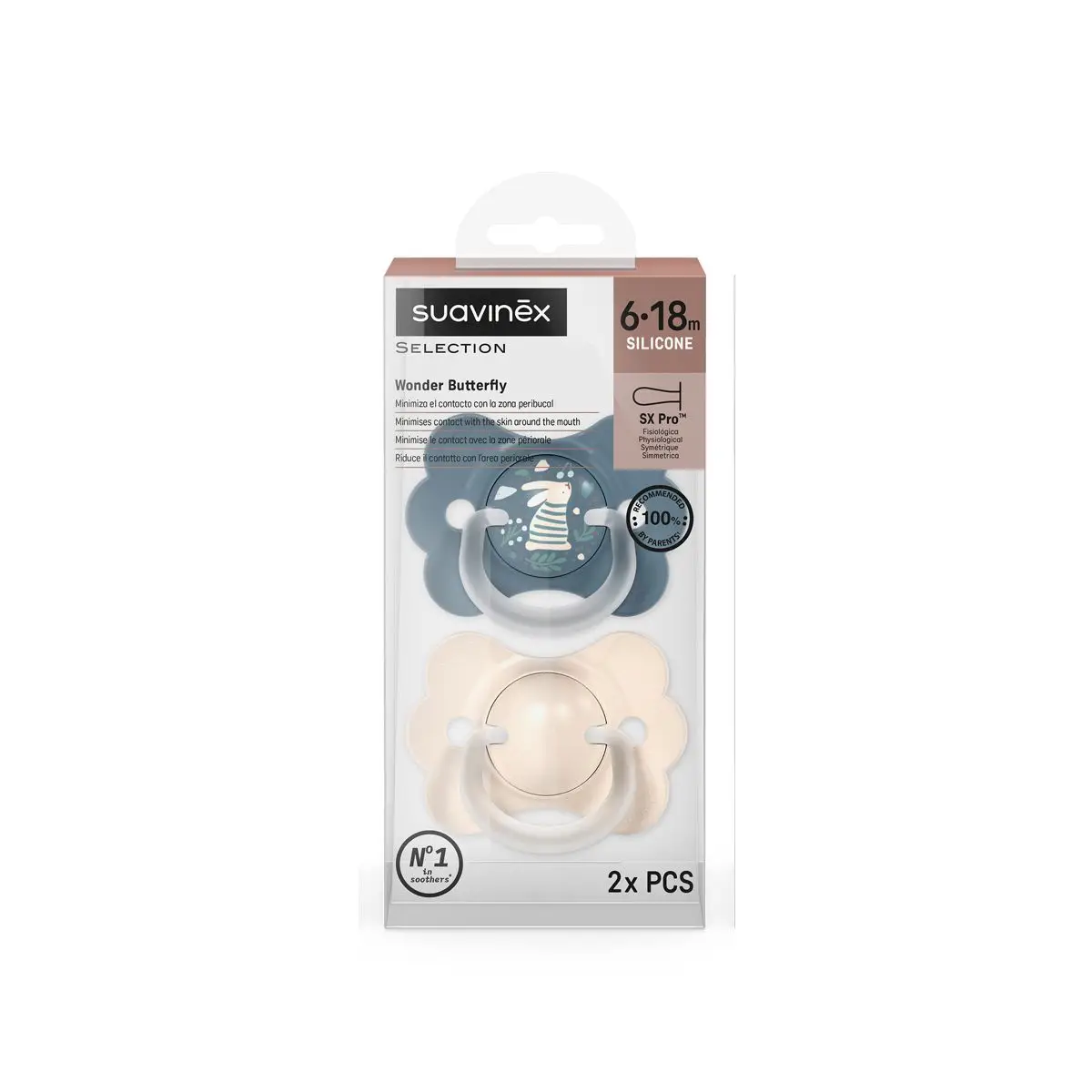 Doručenie SUAVINEX Cumlík SX PRO fyziologický 2 Ks BUTTERFLY WONDERLAND NEW 6/18m - modrý králik + krémový