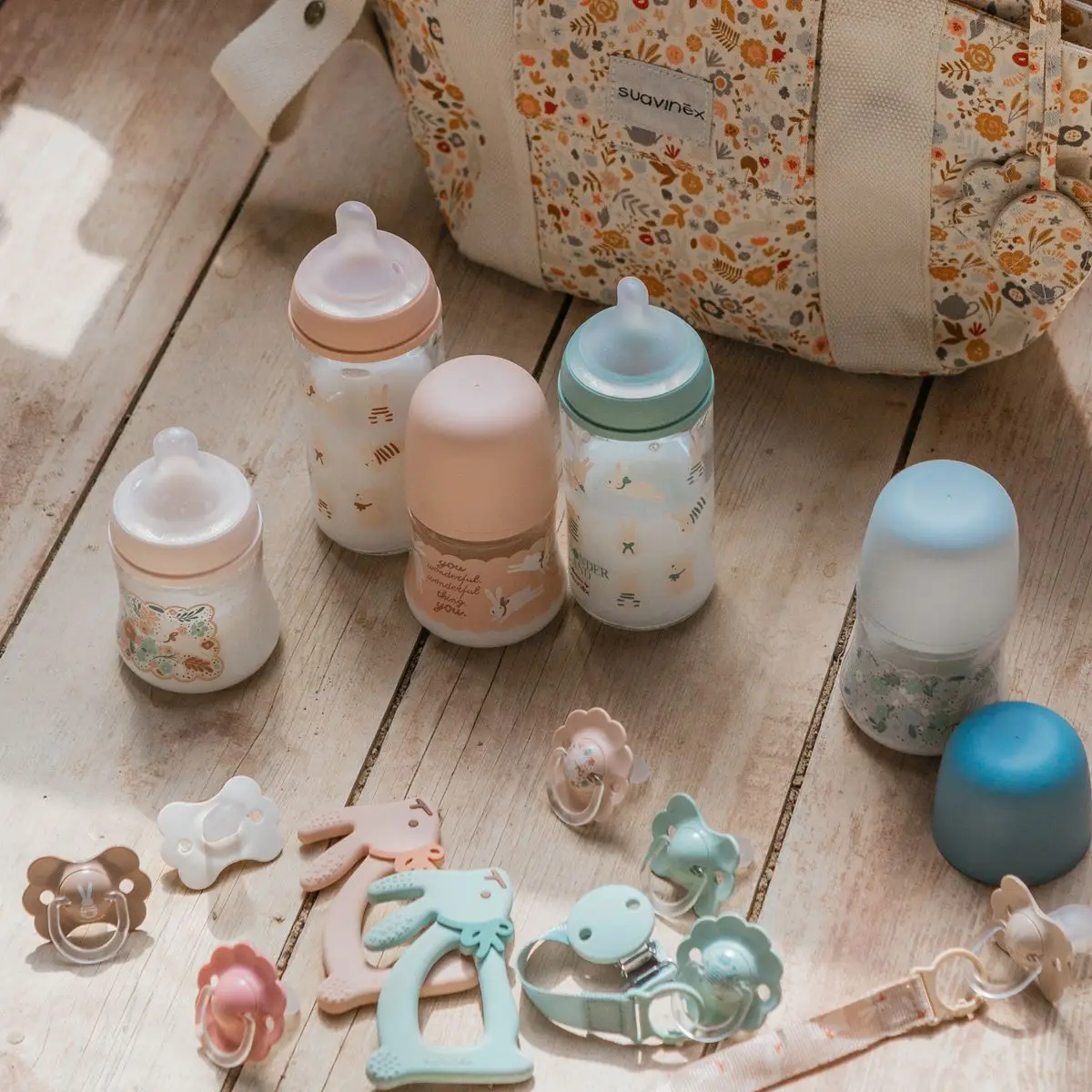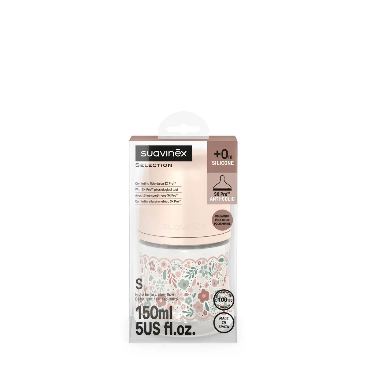 SUAVINEX | Kojenecká láhev WONDERLAND NEW 150ml FYZIOL PRŮTOK S - růžový květ