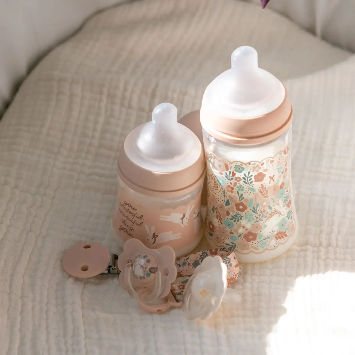 Produkt SUAVINEX | Kojenecká láhev WONDERLAND NEW 150ml FYZIOL PRŮTOK S - růžový květ