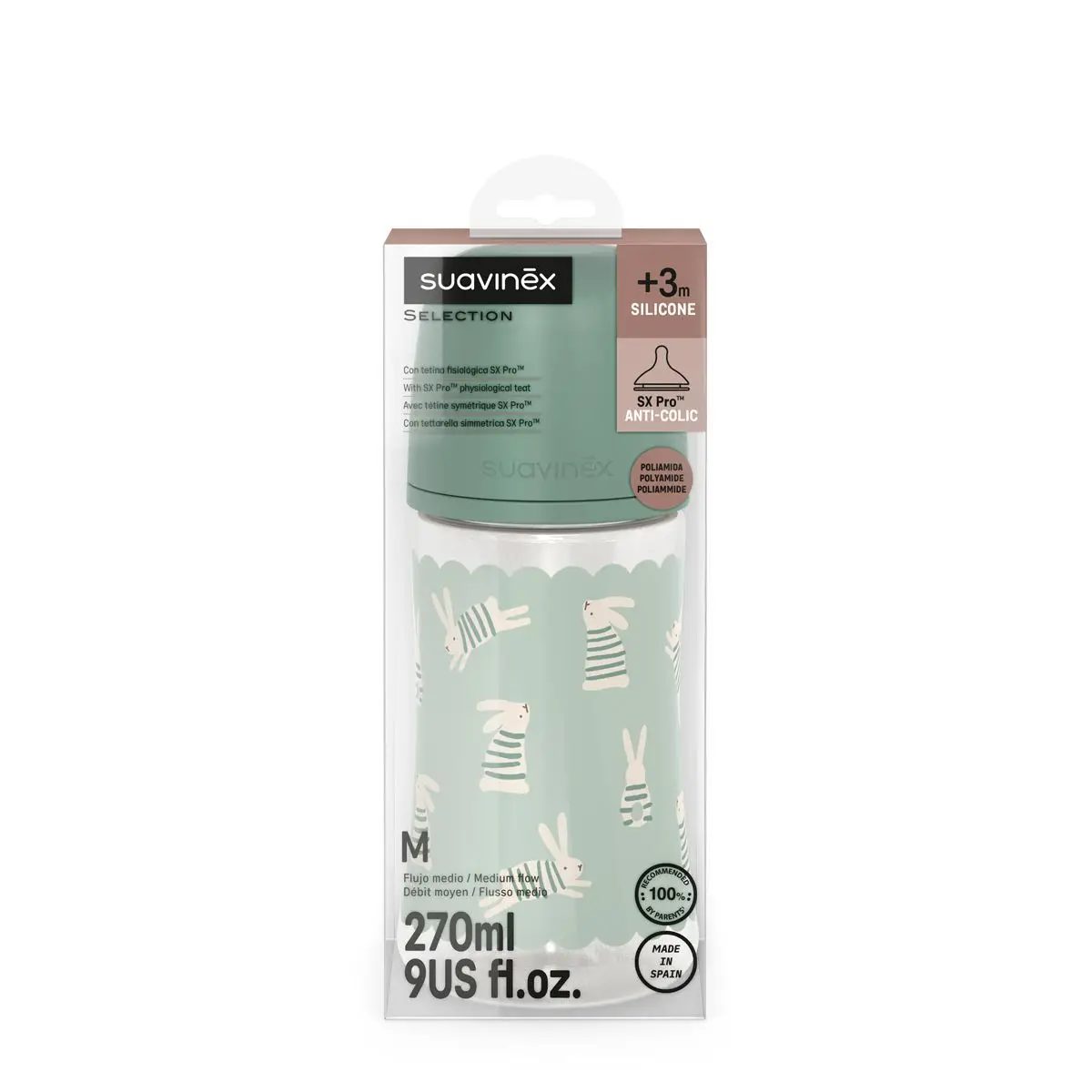 Produkt SUAVINEX | Kojenecká láhev WONDERLAND NEW 270ml FYZIOL PRŮTOK M - zelený králík