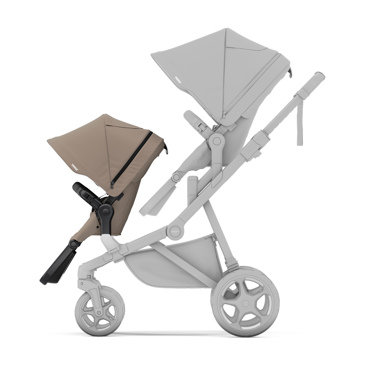 Snadno přeměňte svůj Thule Sleek 2 na pohodlný sourozenecký kočárek – stačí přidat sourozenecké sedadlo Thule Sleek 2 a obě děti jsou připraveny vyrazit