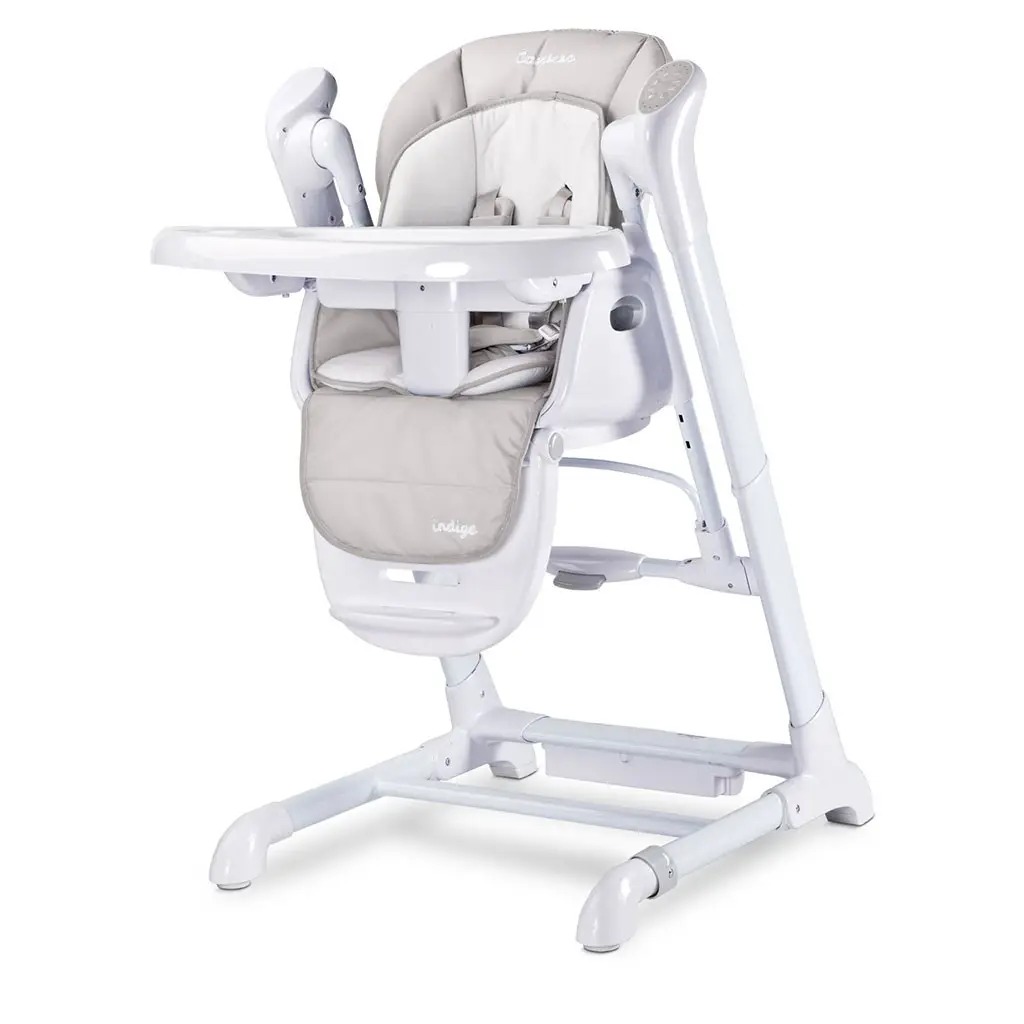 Krásna detská jedálenská stolička 2v1 Caretero Indigo. Ponúka stoličku a hojdačku v jednom sete.