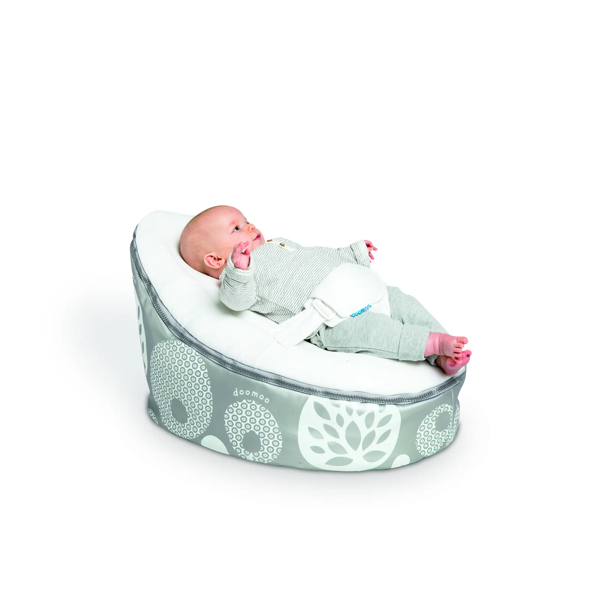 Doomoo seat je adaptovateľné a multifunkčné sedádko fazuľového tvaru, ktoré garantuje úplný komfort maličkým bábätkám od narodenia, vďaka jeho bezpečnostným pásom, ale aj väčším deťom až do 30 kg. Pomocou jeho 2 vrchných vrstiev, ktoré môžu byť oddelené a zamenené, je Doomoo sedátko prispôsobiteľné veku a rozvoju dieťaťa.