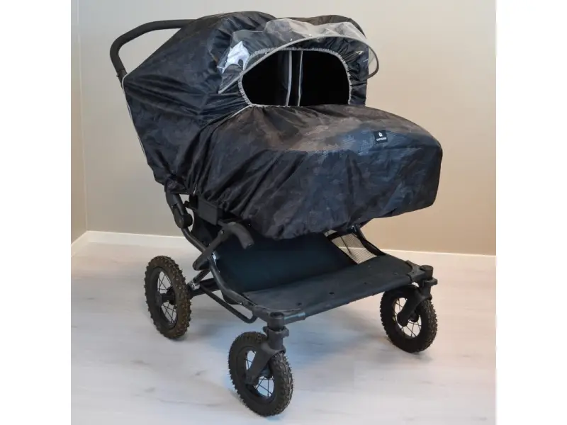 Univerzálna pláštenka na kočík pre dvojčatá je praktická ochrana proti dažďu a vetru. Priehľadná predná clona chráni deti a zároveň necháva dovnútra kočíka prúdiť svetlo a umožňuje výhľad z kočíka. Veľký predný otvor zaisťuje príjemné vetranie. Pláštenka má bočný zips, vďaka ktorému ju ľahko otvoríte a rýchlo zložíte aj mokrú, a to s minimálnym hlukom. Pre bezpečnejší pohyb za šera je doplnená reflexnými prvkami. Po použití ju ľahko zložíte do integrovaného vrecka.