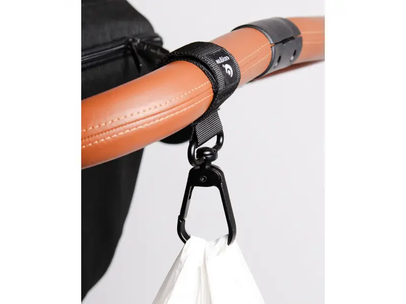 Veľký a pevný háčik na kočík je praktický doplnok na zavesenie tašiek, batohov aj nákupných tašiek. Vďaka dlhému suchému zipsu drží na rukoväti kočíka stabilne a bezpečne.