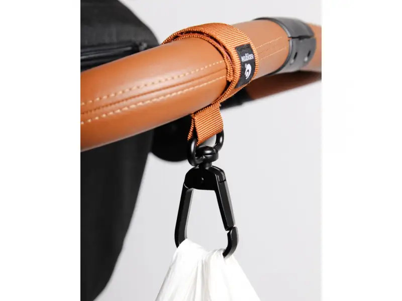 Veľký a pevný háčik na kočík je praktický doplnok na zavesenie tašiek, batohov aj nákupných tašiek. Vďaka dlhému suchému zipsu drží na rukoväti kočíka stabilne a bezpečne.