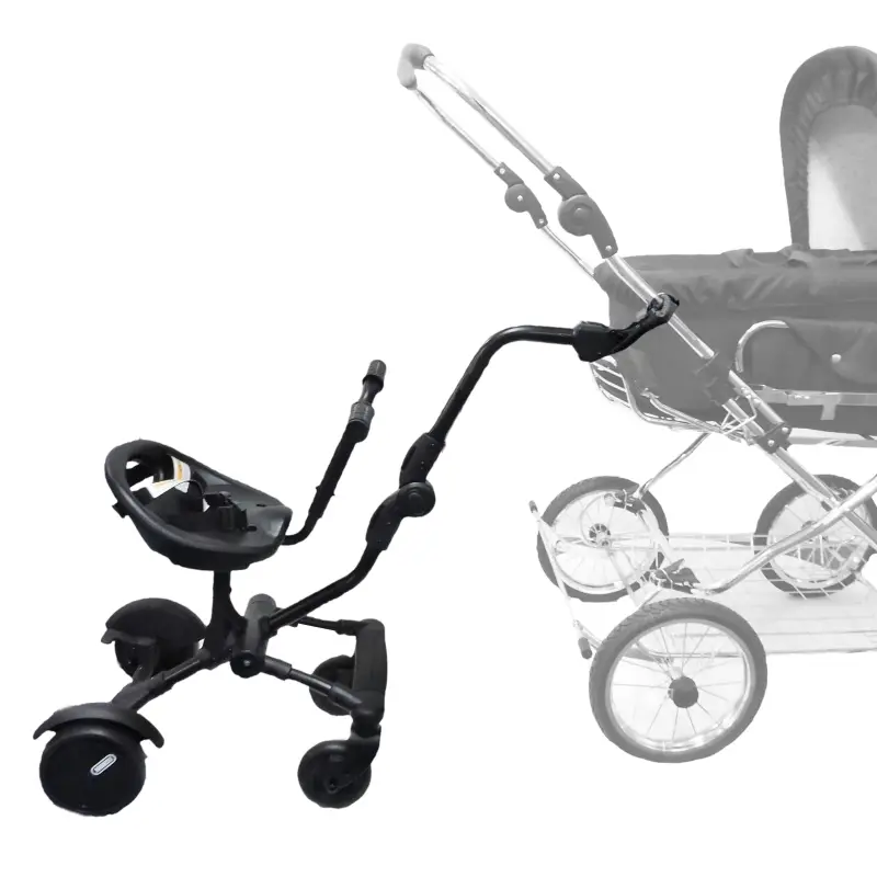 Vďaka inovatívnemu uchyteniu je tento súrodenecký rider kompatibilný s takmer všetkými bežnými kočíkmi a športovými kočíkmi bez ohľadu na typ brzdového systému. Downtown Rider sa veľmi ľahko inštaluje. Bočné uchytenie ku kočíku poskytuje rodičom viac priestoru na nohy pri tlačení – žiadne objemné stúpadlo medzi nohami, ktoré by vás nútilo tlačiť kočík zo strany! Môžete pohodlne kráčať za kočíkom, zatiaľ čo Downtown Rider ide vedľa neho a dieťa si užíva ničím nerušený výhľad.