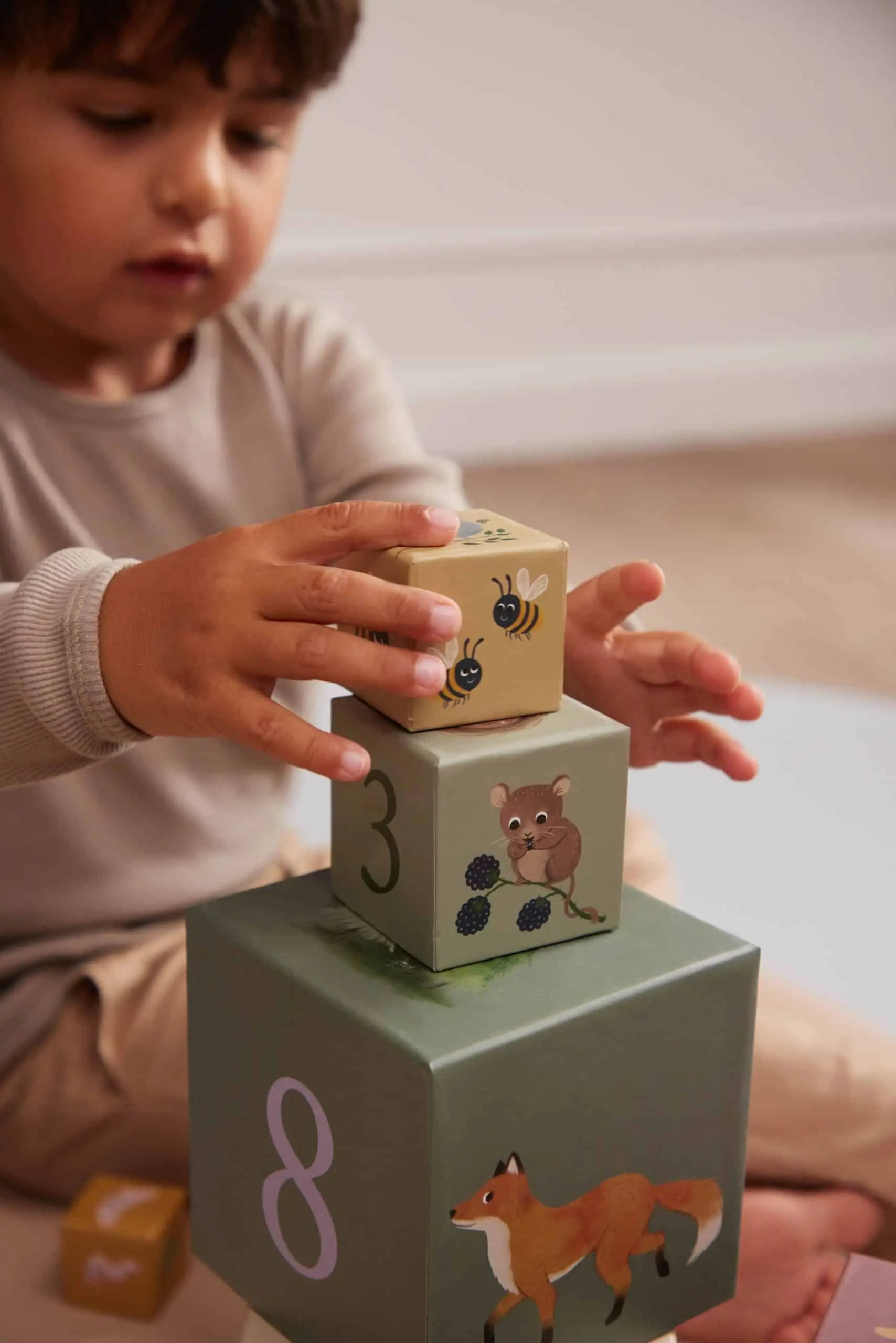 Papierové kocky Filibabba sú vhodné pre deti od 12 mesiacov, ale malému staviteľovi môžu určite pomôcť aj starší súrodenci či rodičia.