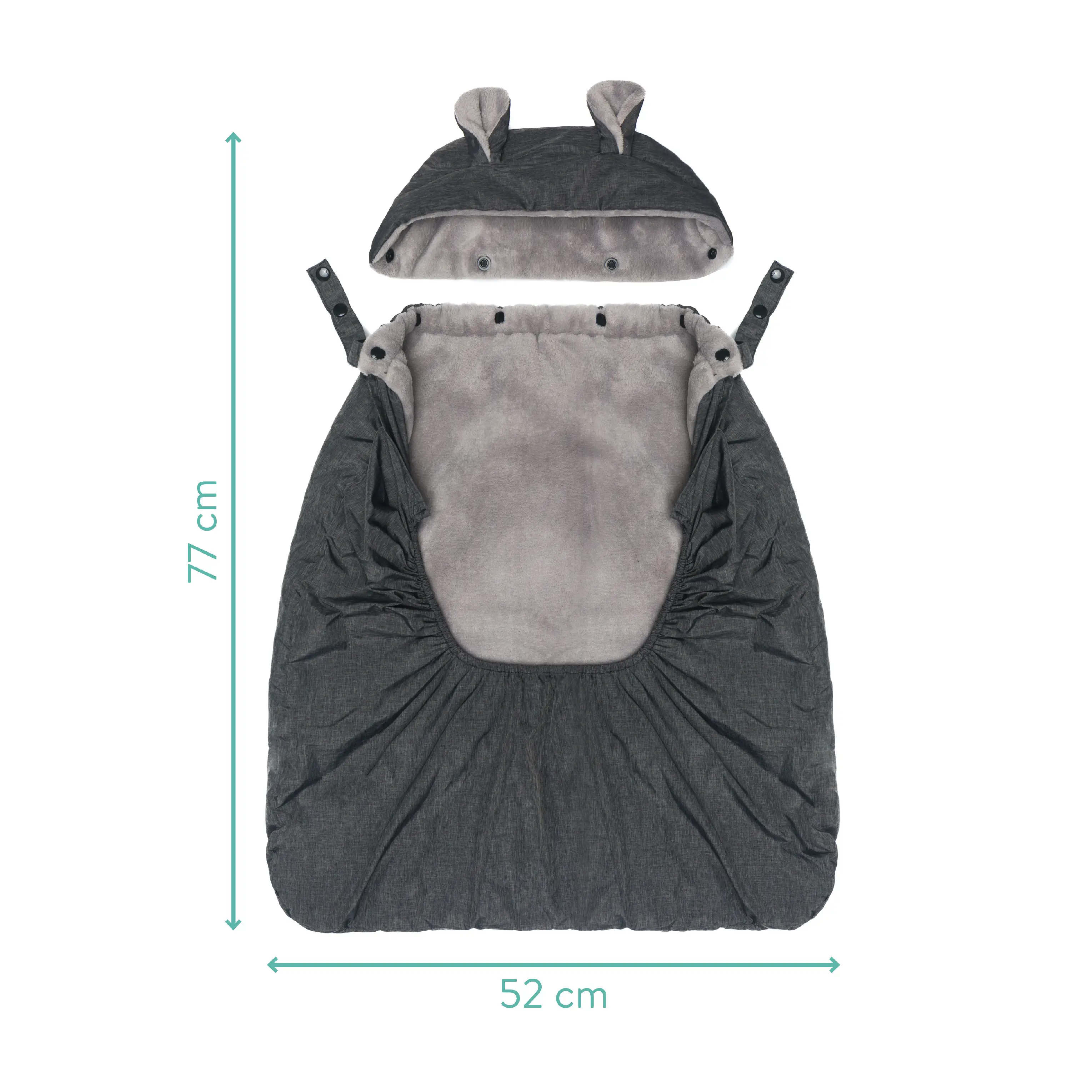 Vonkajšia vrstva je vyrobená z materiálu odolného proti vetru a vode, zatiaľ čo príjemná vnútorná podšívka z extra jemného koralového flisu udrží vaše dieťa v teple. Vďaka premyslenému dizajnu môžete kryt pripevniť niekoľkými jednoduchými krokmi. Navyše, vďaka praktickým popruhom zostáva pevne na svojom mieste.