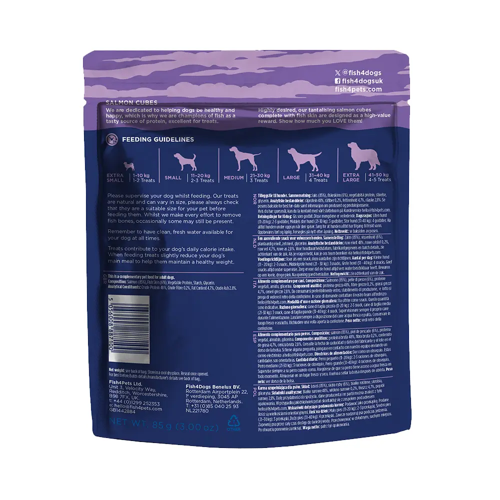 FISH4DOGS Maškrty pre psov LOVE s lososom - kocky 85 g