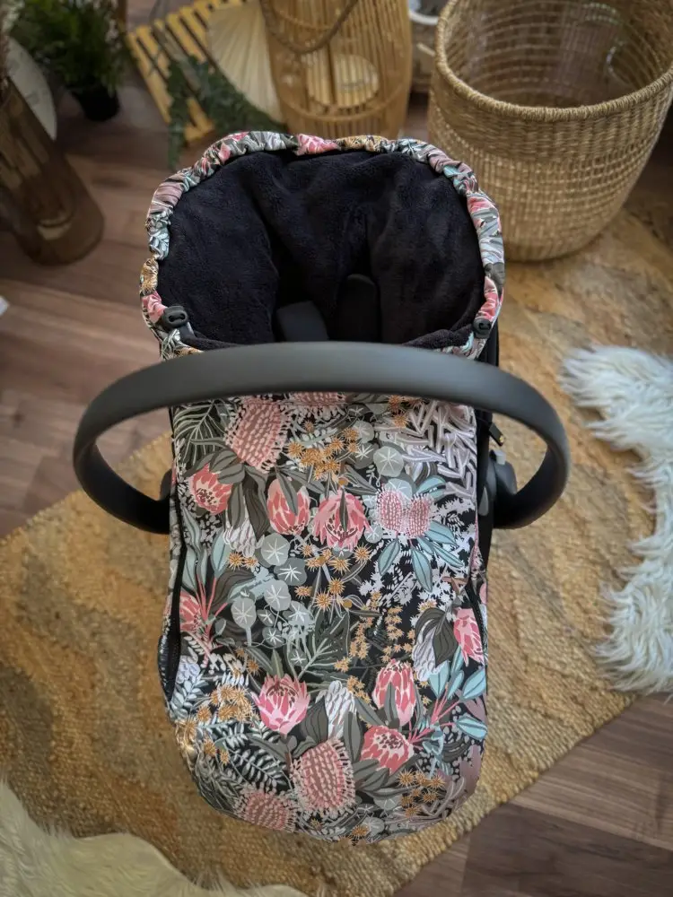 Predný diel je úplne odnímateľný pomocou dvoch zipsov. Dieťa tak je možné pohodlne umiestniť a vrchný diel potom pripnúť zipsy. V oblasti hlavičky je možné vrchnú časť fusaku stiahnuť, voľné šnúrky potom aj s brzdičkou schovajte do tunela od šnúrky, aby dieťaťu neprekážali. Zadná časť fusaku je prispôsobená päťbodovému upínaniu. V dolnej časti opatrne prestrihnite obšité otvory, podľa toho, ktorý Vám bude vyhovovať.