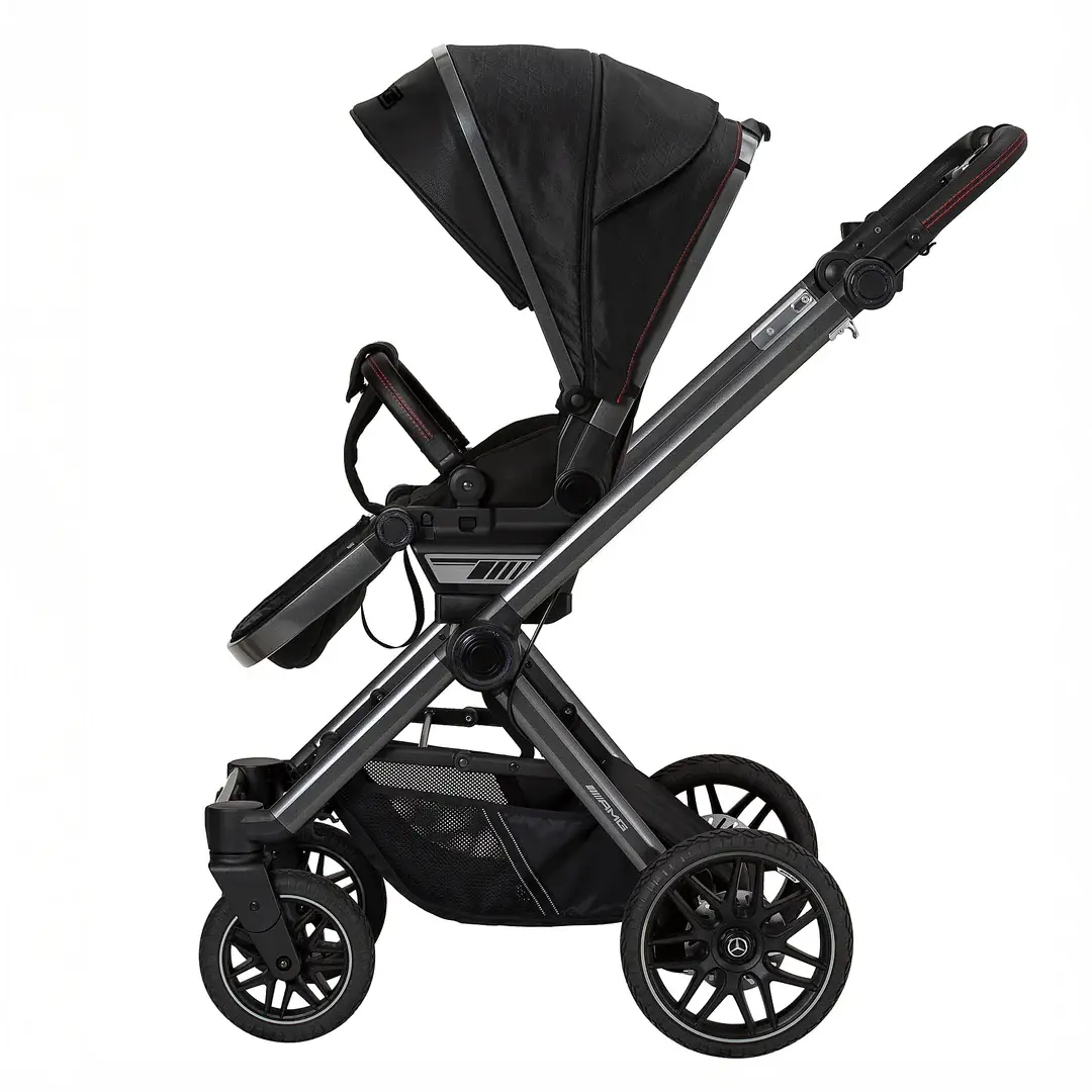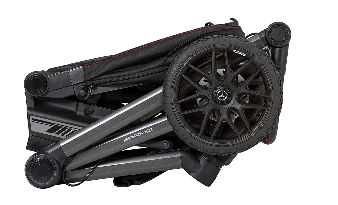 Vďaka svojej ultrakompaktnej veľkosti len 71 × 58,5 × 32 cm sa kočík dá zložiť za pár sekúnd, a to aj s nasadeným športovým sedadlom. Je ideálny na cestovanie a zmestí sa aj do menších batožinových priestorov. Prémiové otočné kolesá s odpružením ľahko zvládnu akýkoľvek povrch a ráfiky v originálnom dizajne AMG dodávajú kočíku nezameniteľný charakter.