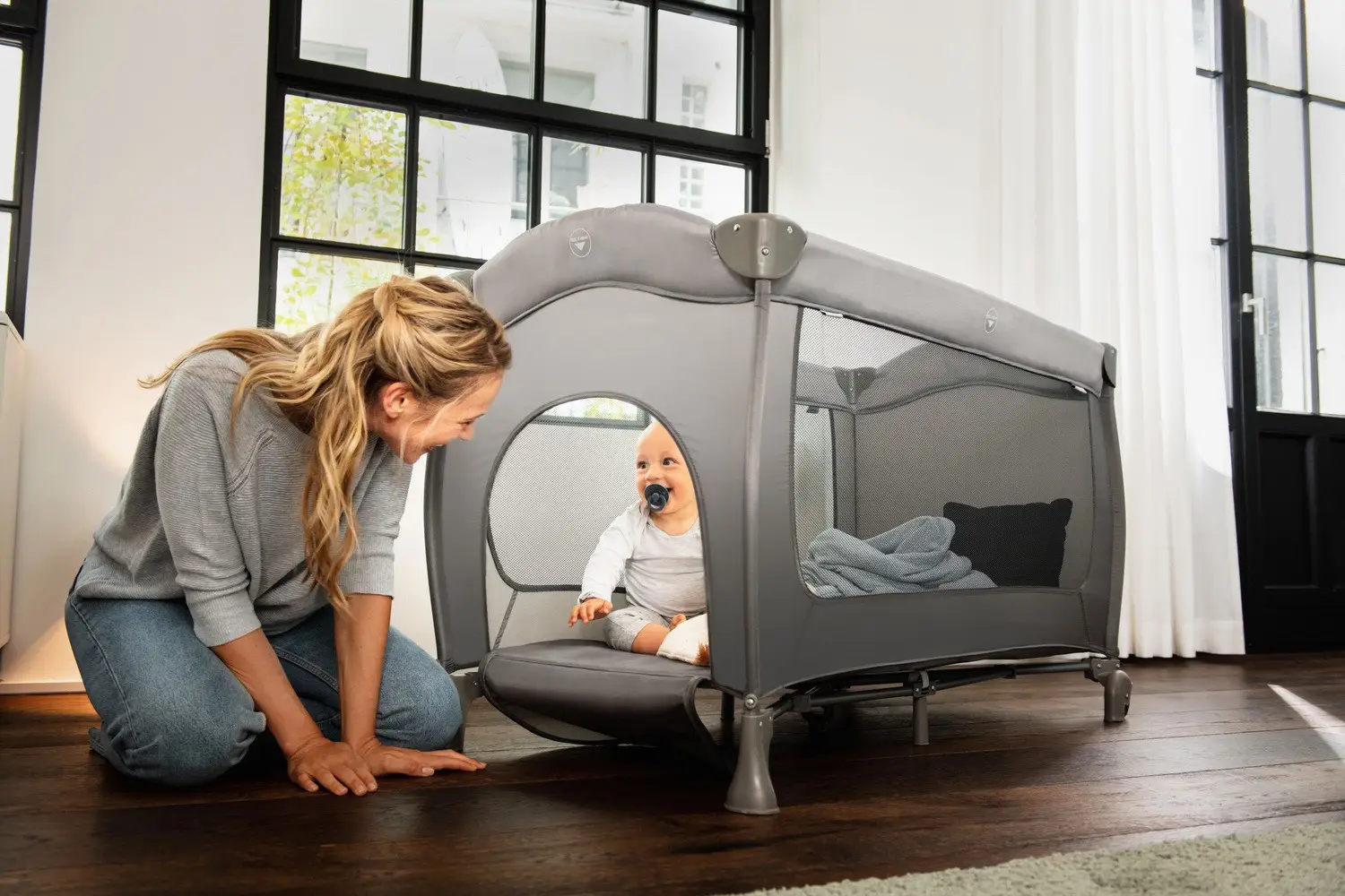Vo Sleep'n Play Go Plus môžete Vaše dieťa nechať pokojne spať alebo sa hrať. Cez výhľadové okienka budete mať potomka vždy krásne na dohľad. Postranné východ zaistí pri preliezanie skvelú zábavu.