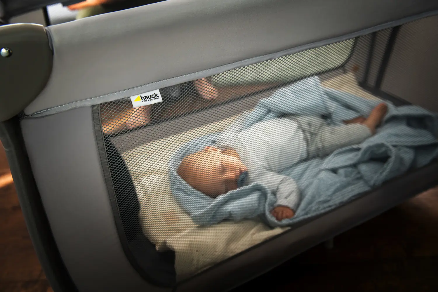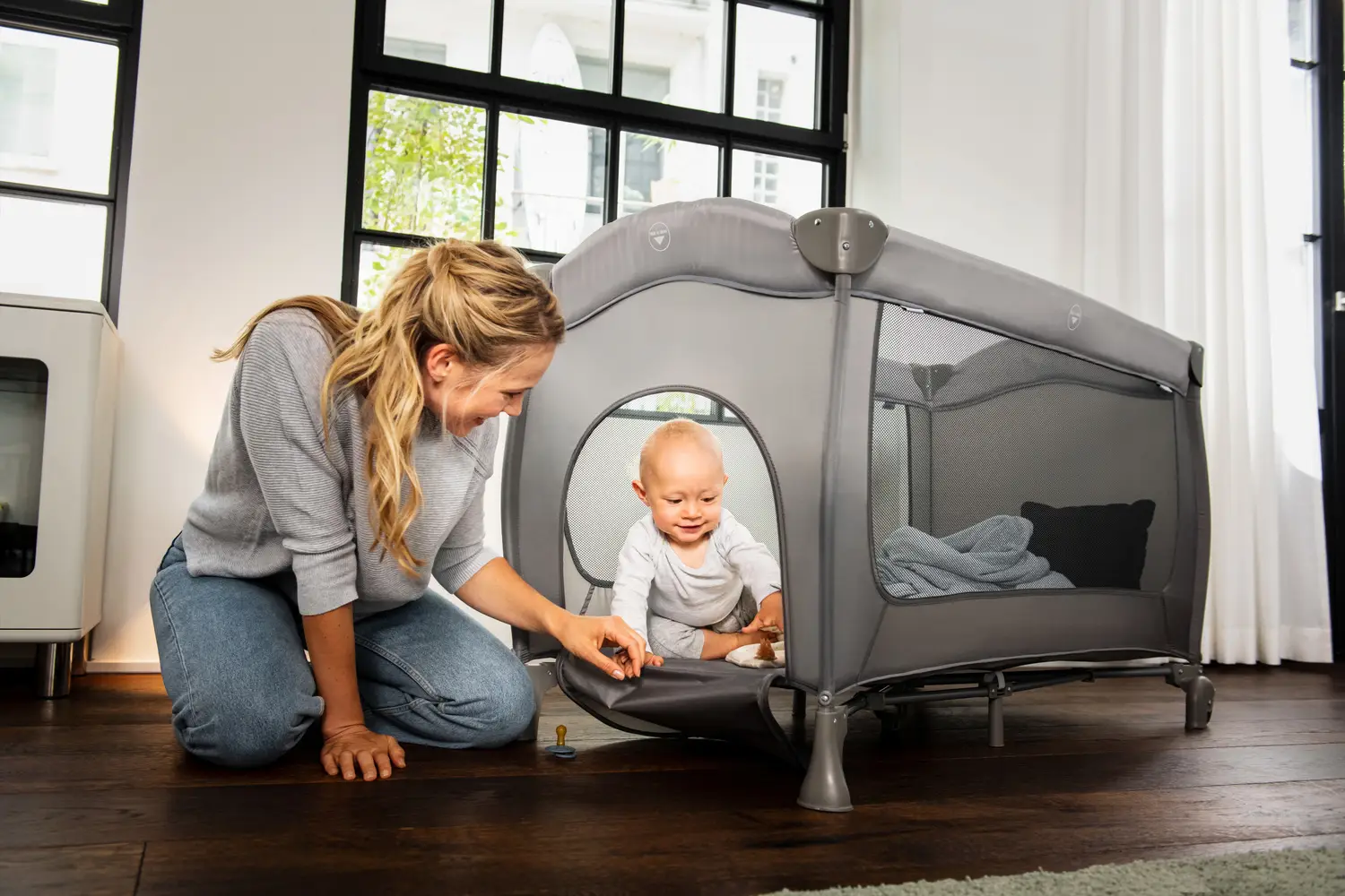 Čas na hranie // Postranný otvor zaručí veľké dobrodružstvo, dieťa tadiaľto môže preliezať a má tak o zábavu postarané. Cez deň cestovná postieľka poslúži ako hracie centrum av noci sa vďaka kolieskam premení na praktickú prístavnú postieľku do spálne. Bábätko tak budete mať vždy úplne nablízku a môžete pokojne spať.