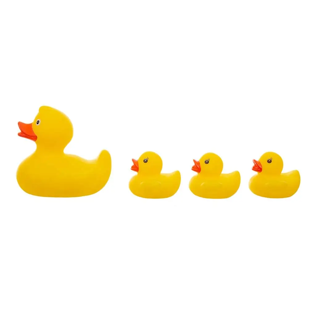 Naša súprava obsahuje 4 gumové kačičky - matku kačičku a 3 malé kačiatka.