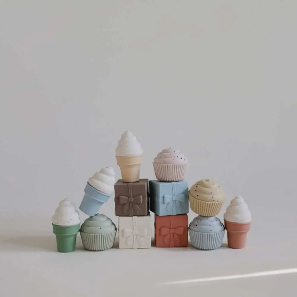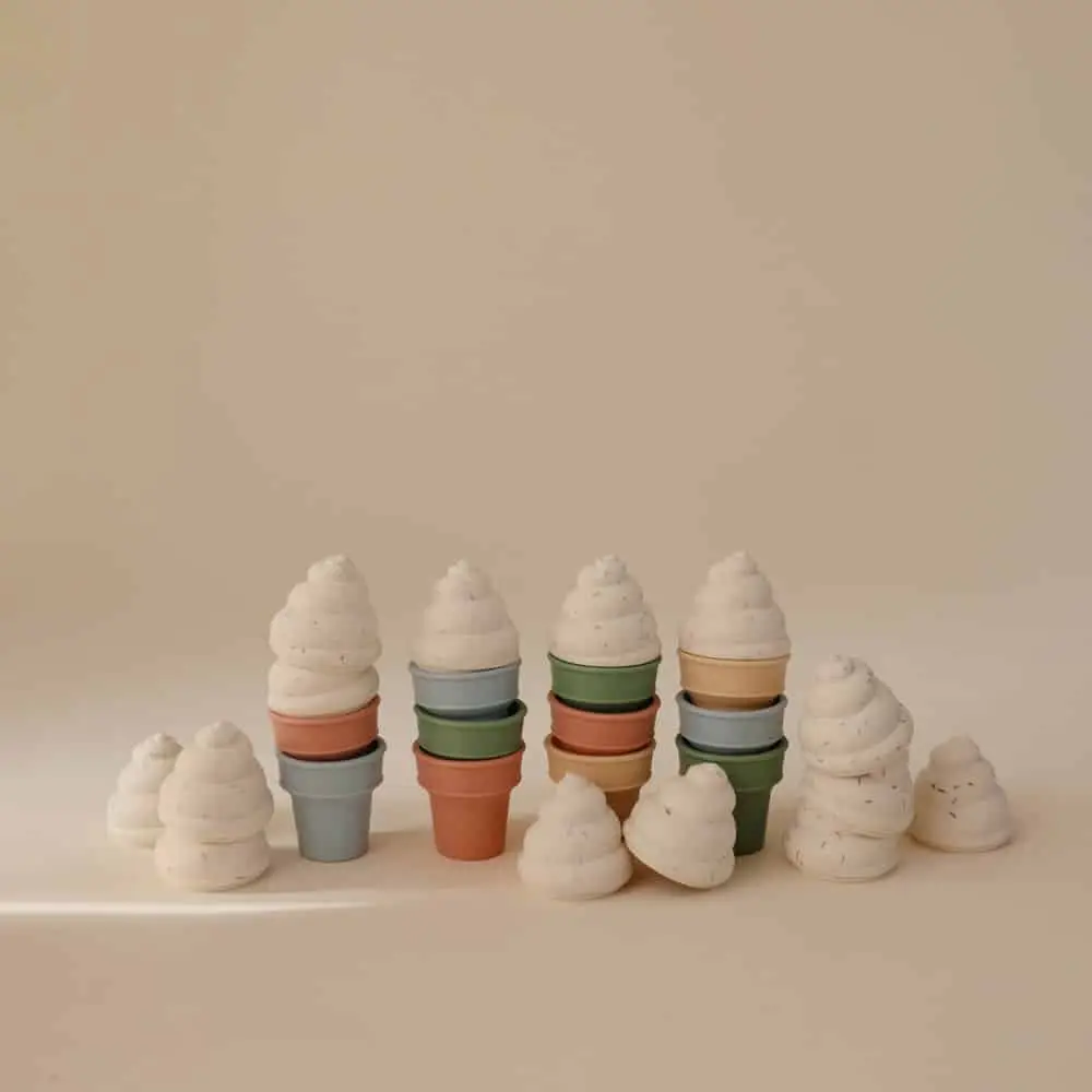 Rozvíjajte kreativitu a jemnú motoriku s roztomilou hračkou Mushie Mix & Match Ice Cream, ktorá vnesie do detského sveta hru na zmrzlinára.